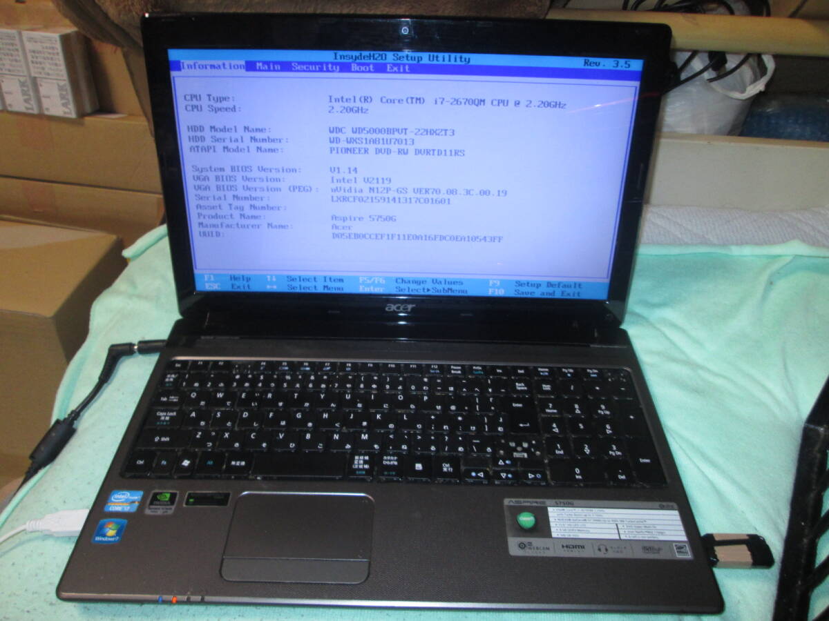 Product name: acer Aspire 5750G-A78D/K OS無し Intel Core i7-2670QM 2.20GHz 8GB 500GB 15.6型 ブラック系 訳あり品 ◇p1783◇