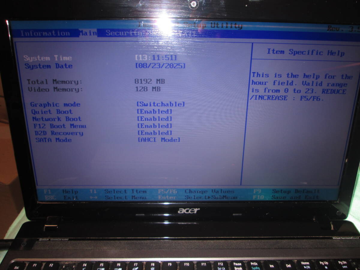 ・BIOS表示/編集時にカーソル操作がおかしくなることがあります。   原因:未確認