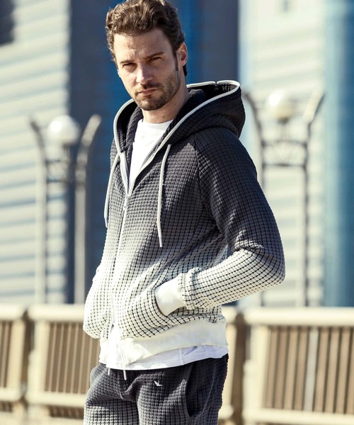 参考商品名:1PIU1UGUALE3 RELAX(ウノピゥウノウグァーレトレ リラックス)グラデーションワッフルジップパーカー