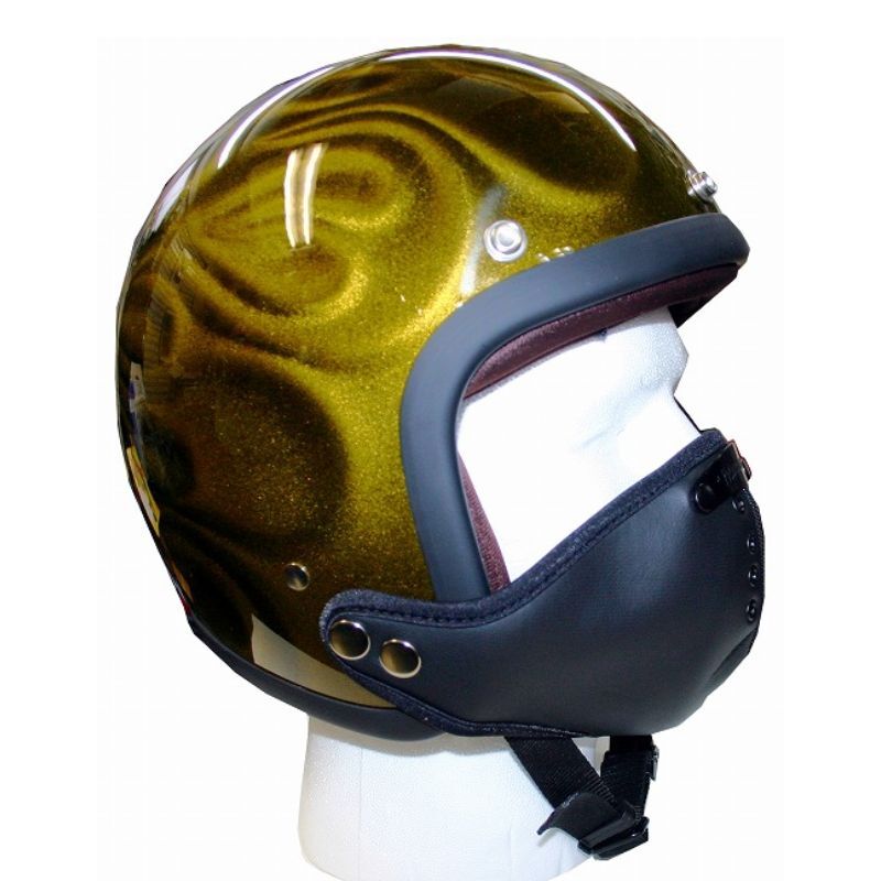 ジェットタイプ等の、両脇にドットが付いているヘルメットに簡単装着できるマスク。