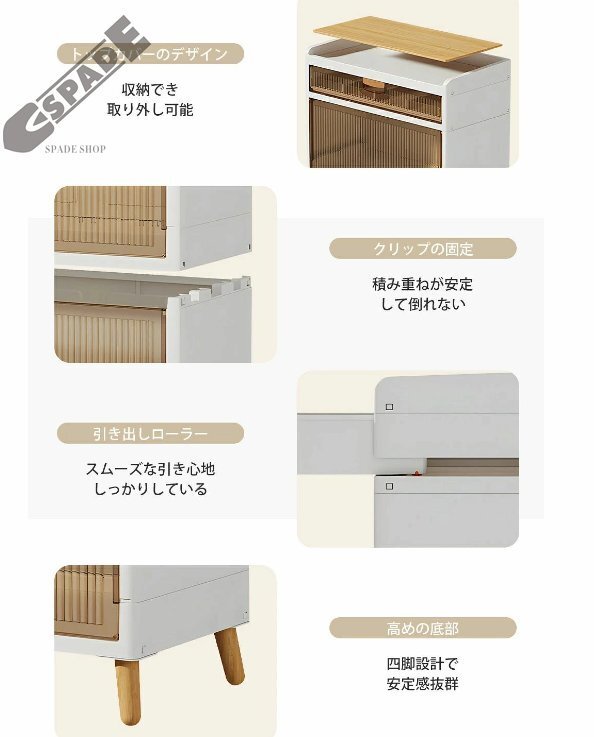 Product name: 【国内発送】収納ボックス 前開き 折りたたみ 木脚 4段 コンテナ ボックス 取っ手付き 大型 クリアボックス 収納ケース 蓋付き 折り畳み