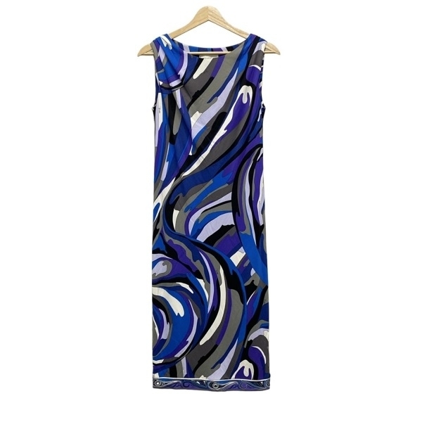 Product name: エミリオプッチ EMILIO PUCCI(PUCCI) サイズI 40 - ブルー×グレー×マルチ レディース クルーネック/ノースリーブ/ロング ワンピース