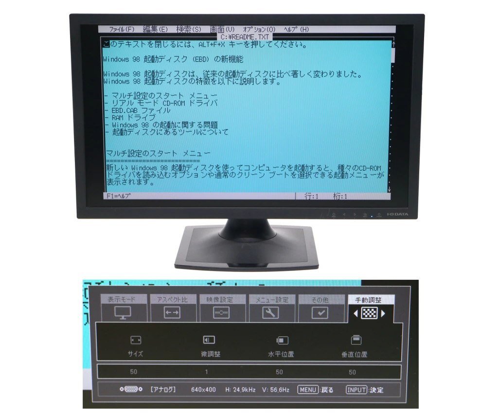 ・解像度640x400/水平周波数24.8kHz/垂直周波数56.3Hz対応