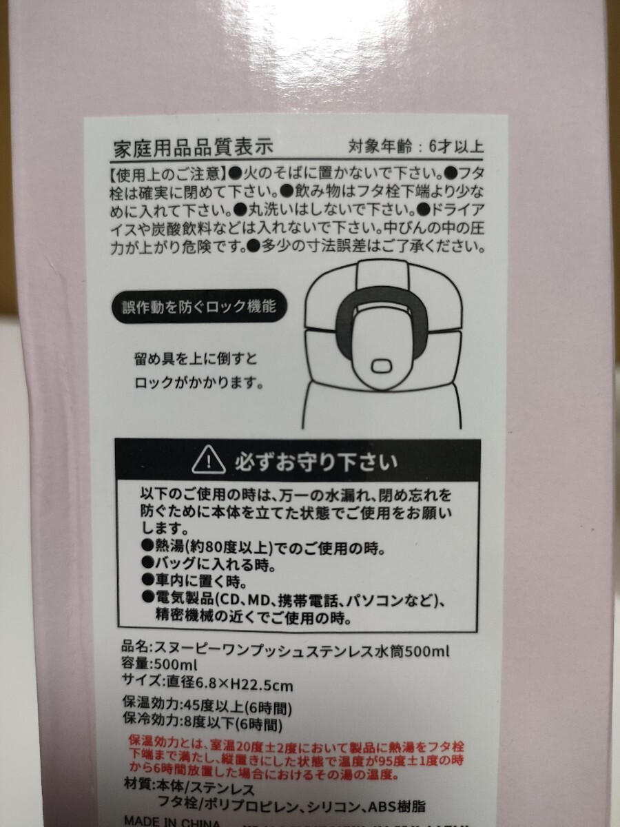 Product name: スヌーピー 水筒 500ml ダイレクト ワンタッチ ステンレス ボトル ピンク