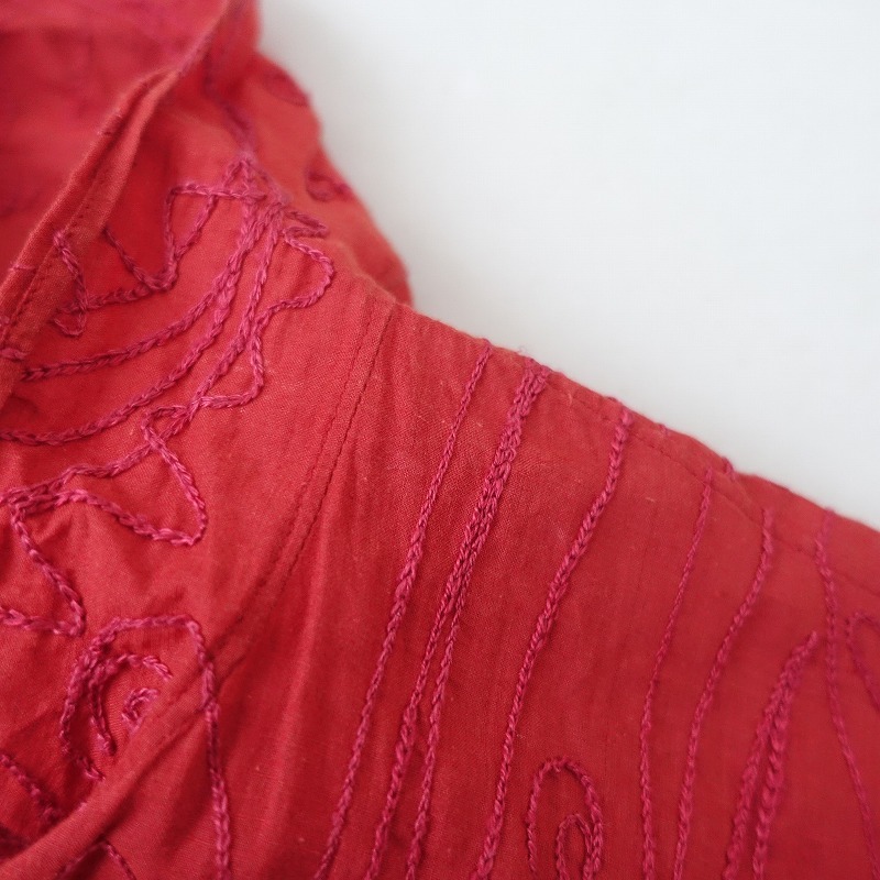 Product name: ヨーガンレール JURGEN LEHL *コットン刺しゅうコート*M綿レッド赤ロング羽織ローブ上着(jk25-2509-114)【82I52】