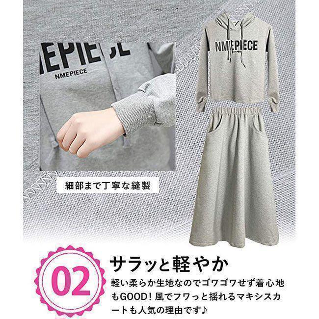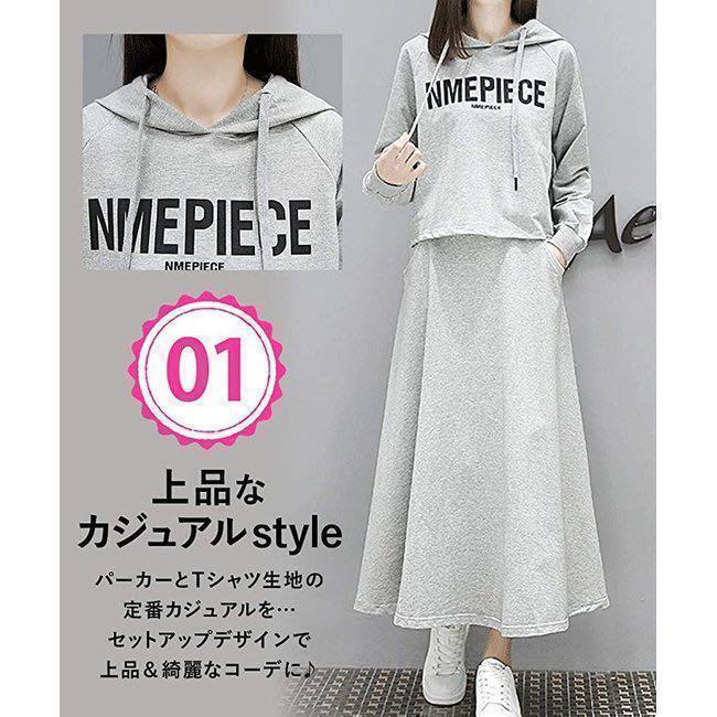 Product name: セットアップ【グレー L】上下 2点 ウェア パーカー 部屋着 ジャージ ルームウェア セット ロング スカート ウェア ロンスカ 186