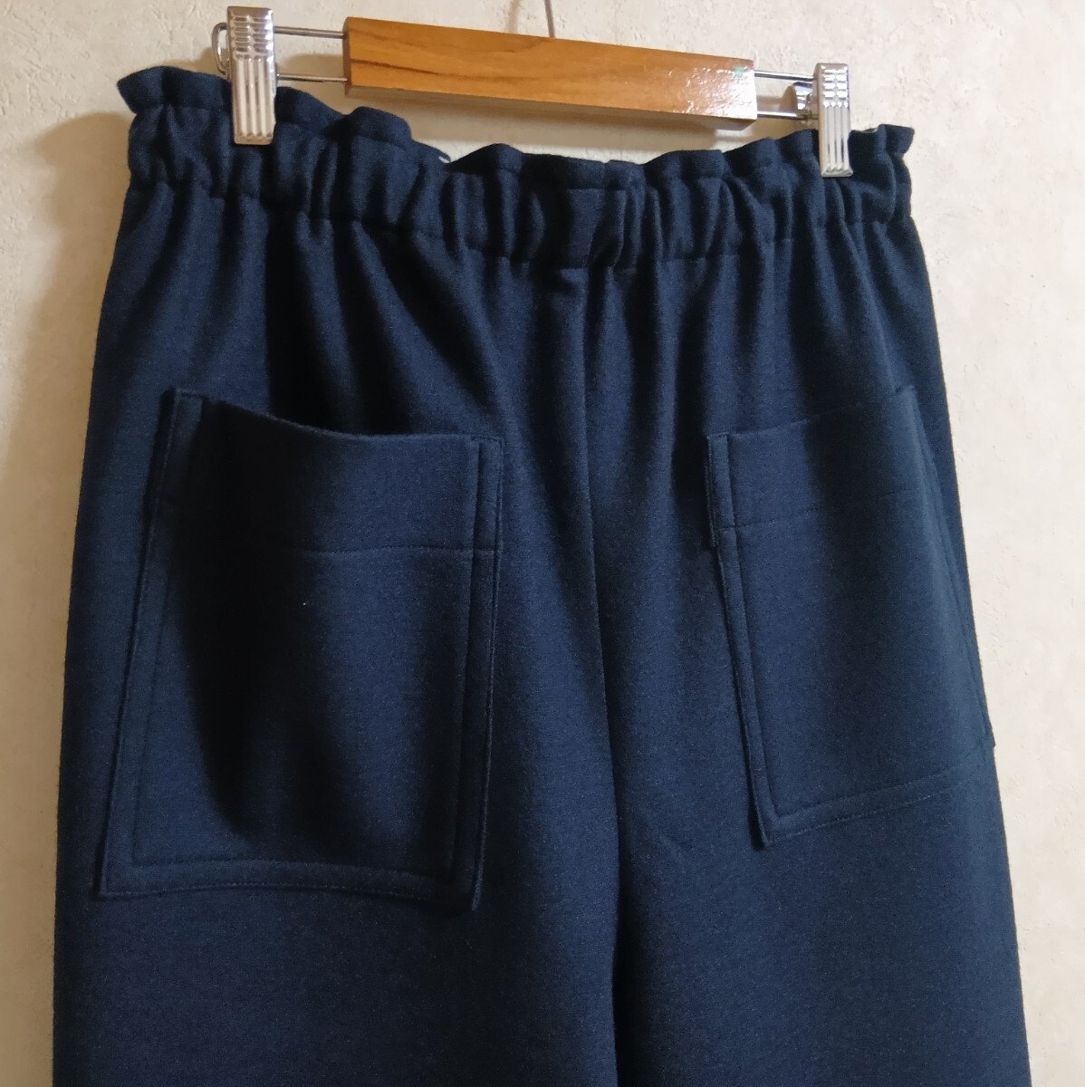 Product name: +ウール圧縮ニットテーパードパンツ+濃紺+でかポケット+ハンドメイド+ウエストゴム穴ありで交換、調節可能+MLサイズ対応+by*see_ya+