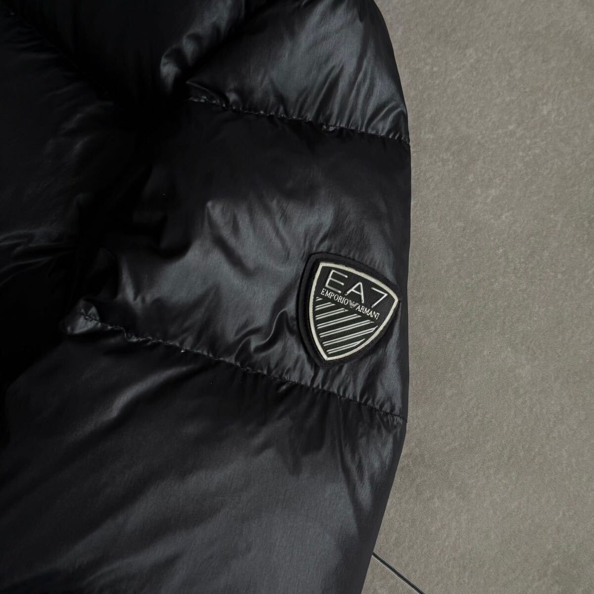 袖には立体的なEA7メタルロゴパッチがあしらわれ、ブランドの存在感を上品に主張します。