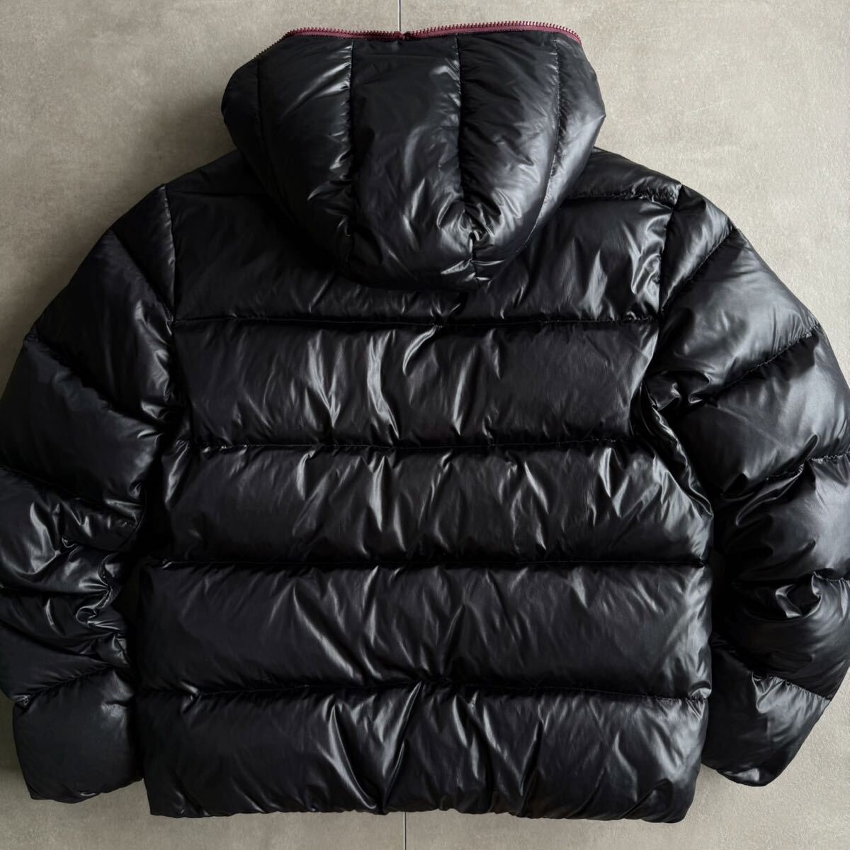 こちらは、艶やかなブラックに深みのあるボルドーの裏地が映える、極上のダウンジャケット。