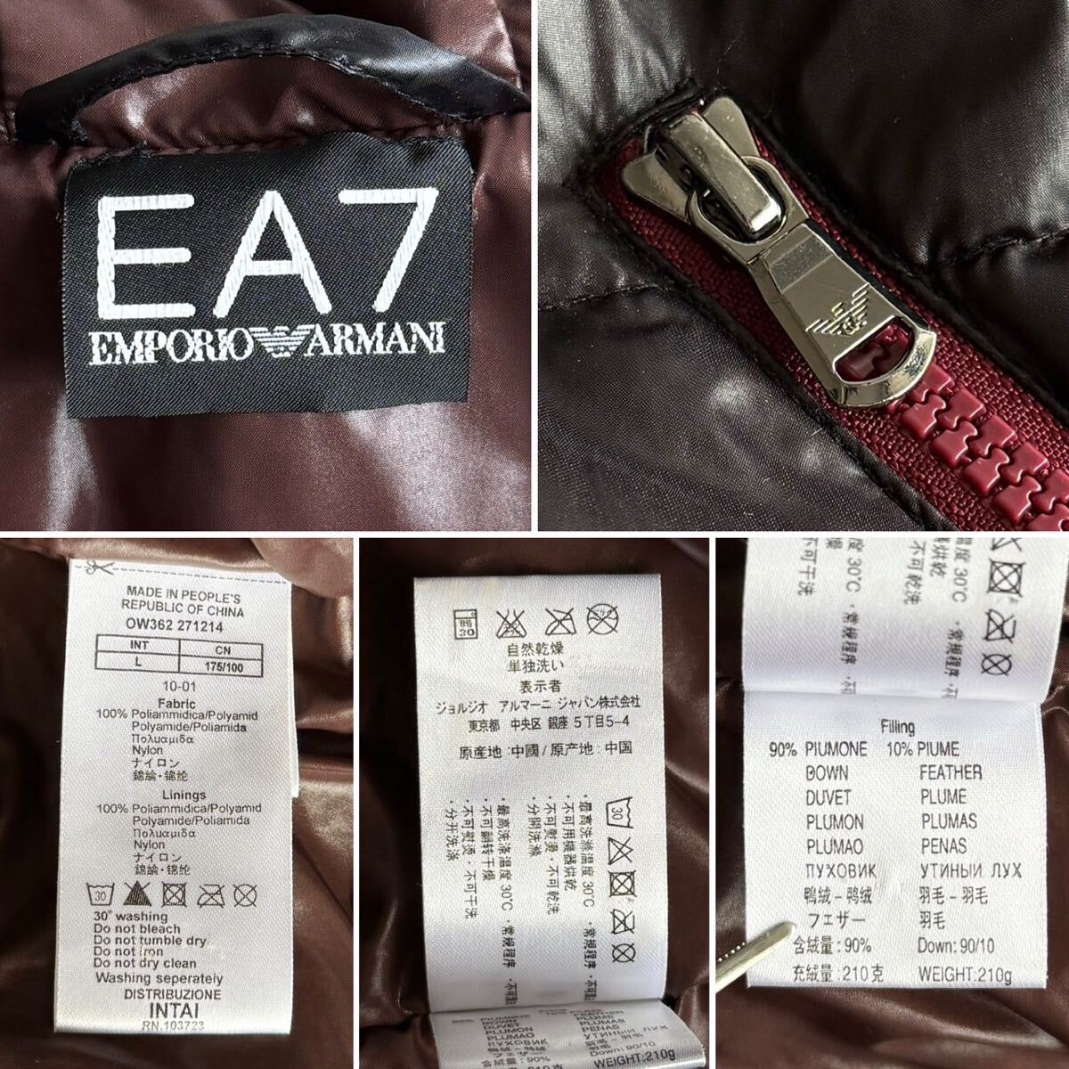 Product name: 極美品/Lサイズ●エンポリオ アルマーニ 極暖 ダウンジャケット ブルゾン ダブルジップ ロゴワッペン ブラック 黒 ボルドー EMPORIO ARMANI