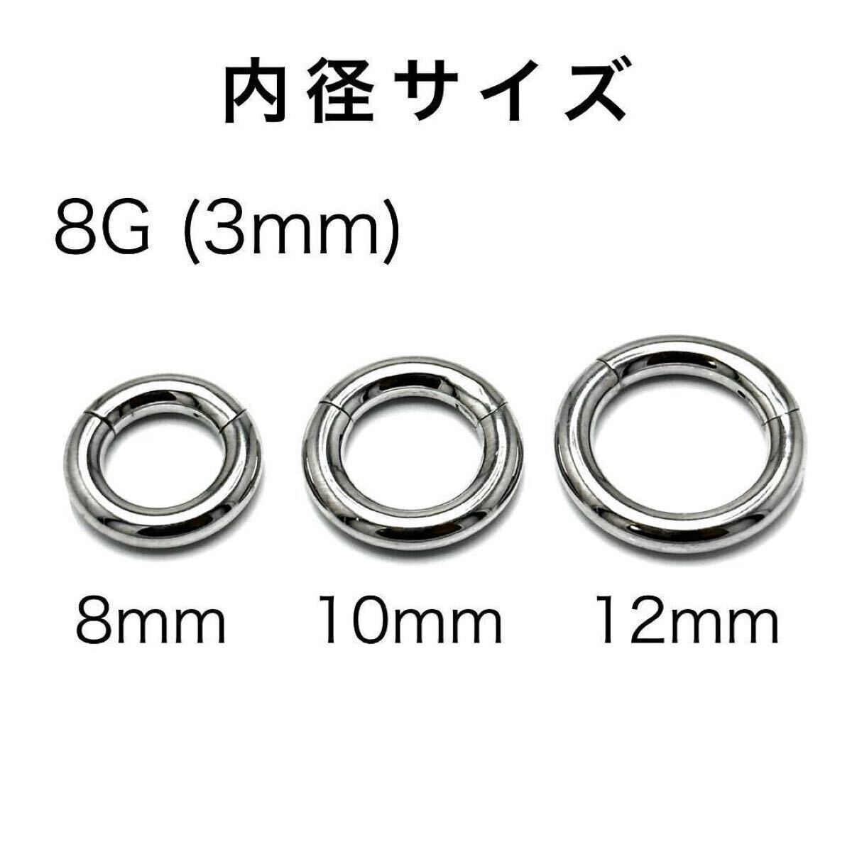8G セグメントリング シルバー ヒンジ付きワンタッチ クリッカー フープ 拡張 ハイゲージ サージカルステンレス ボディピアス