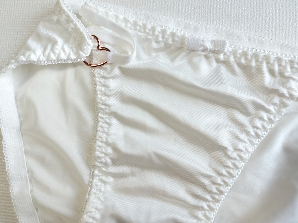 ★新品★ S ショーツ ホワイト 白 サテン風 光沢 ハート飾り つるつる セクシーランジェリー ロリパン