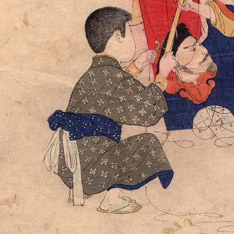 Product name: 10-6 真作【浮世絵】宮川春汀 凧揚げ 版元 滑稽堂 秋山武右衛門 春汀印 MIYAGAWA SYUNTEI UKIYOE 明治期 当時擦 木版画 歴史資料