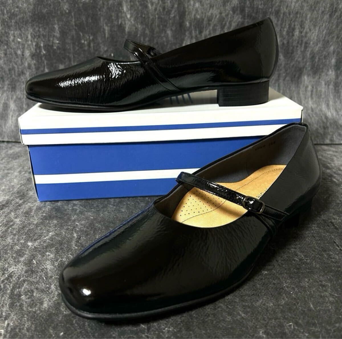 【未使用/大きいサイズ】 ¥20,900- blanc/bleu ブランブルー #8350 ストラップパンプス 本革 エナメル レディース size25.5 EEE *2A