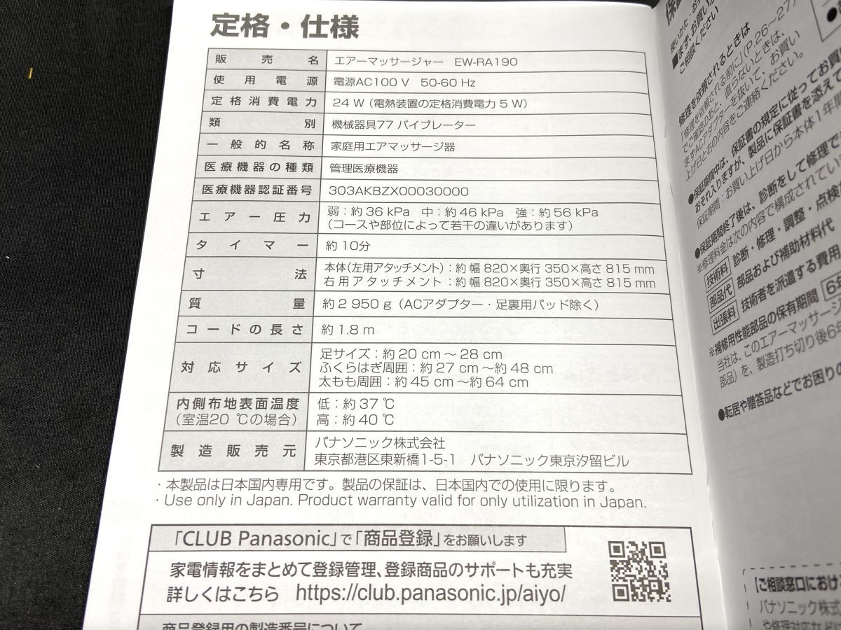 Product name: 【R683】美品 Panasonic パナソニック EW-RA190 エアーマッサージャー 温感レッグリフレ フットマッサージャー ピンク マッサージ器