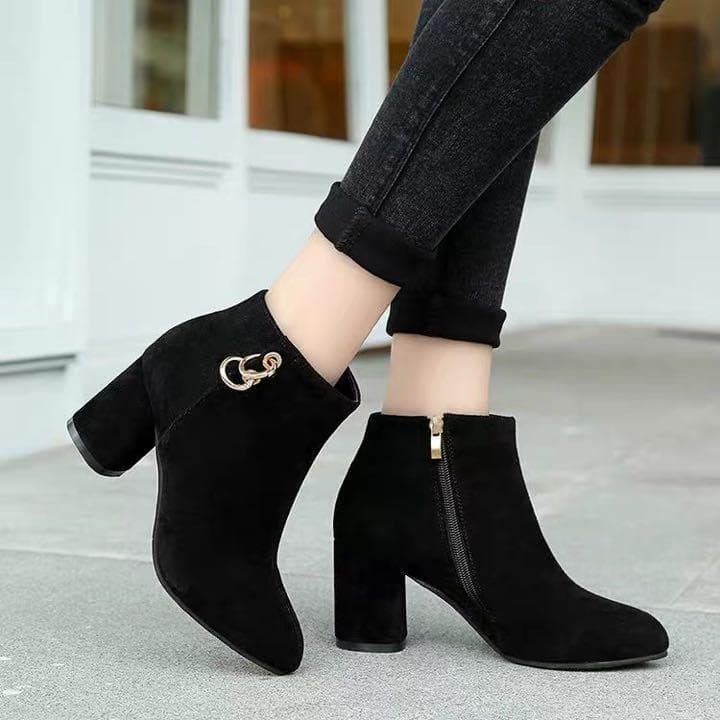 値下 ショートブーツ【24.5】太ヒール サイドジップ 美脚 ブーティー 552