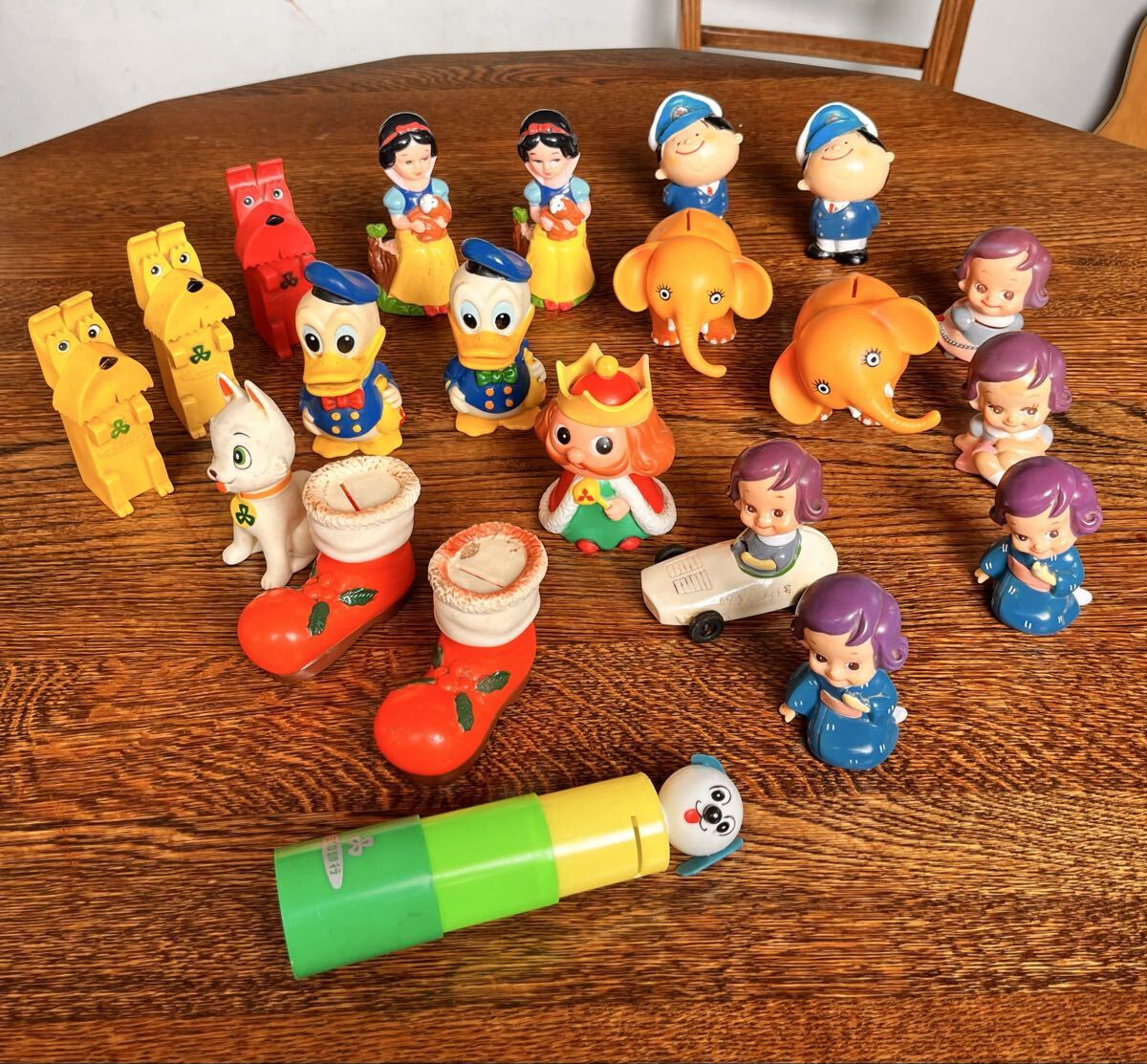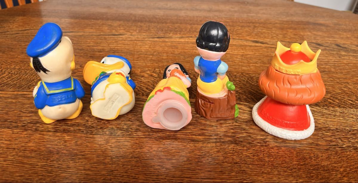 ソフビ貯金箱当時物 昭和レトロ 人形 ディズニー ドナルド 白雪姫 企業物 銀行 ビンテージ かんぎん 三和銀行 三菱銀行 他