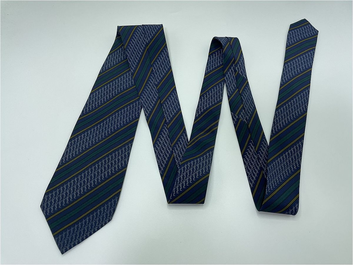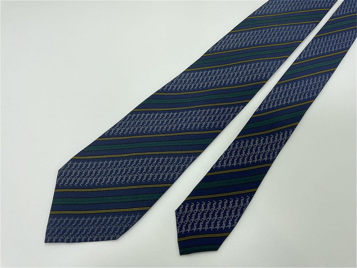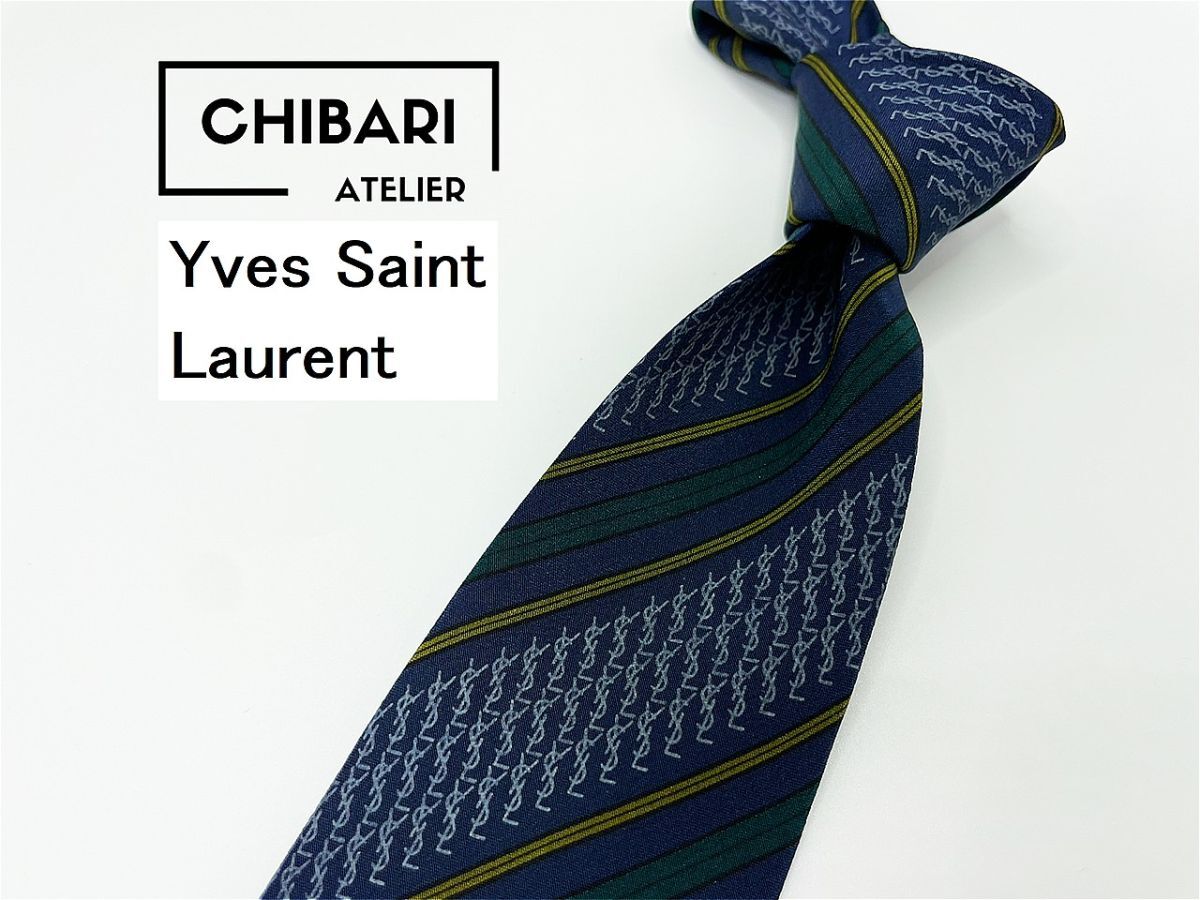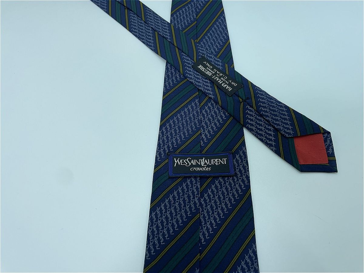 Product name: 【超美品】YvesSaintLaurent サンローラン 全面ロゴ&レジメンタル柄 ネクタイ 3本以上 送料無料 メンズ ネイビー 0903001