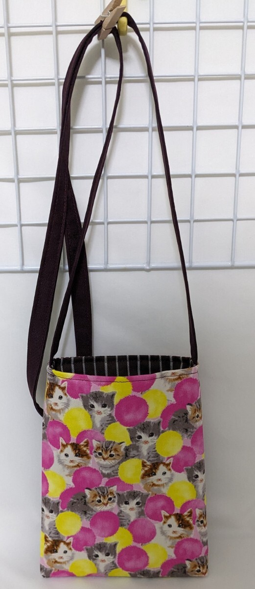 Product name: ハンドメイド・スマホポシェット・子猫と水彩水玉(ピンク)