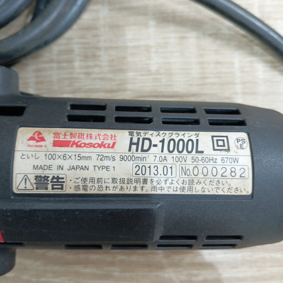 Product name: 電気 ディスクグラインダ 富士製砥株式会社 HD-1000L 現状品 1円スタート
