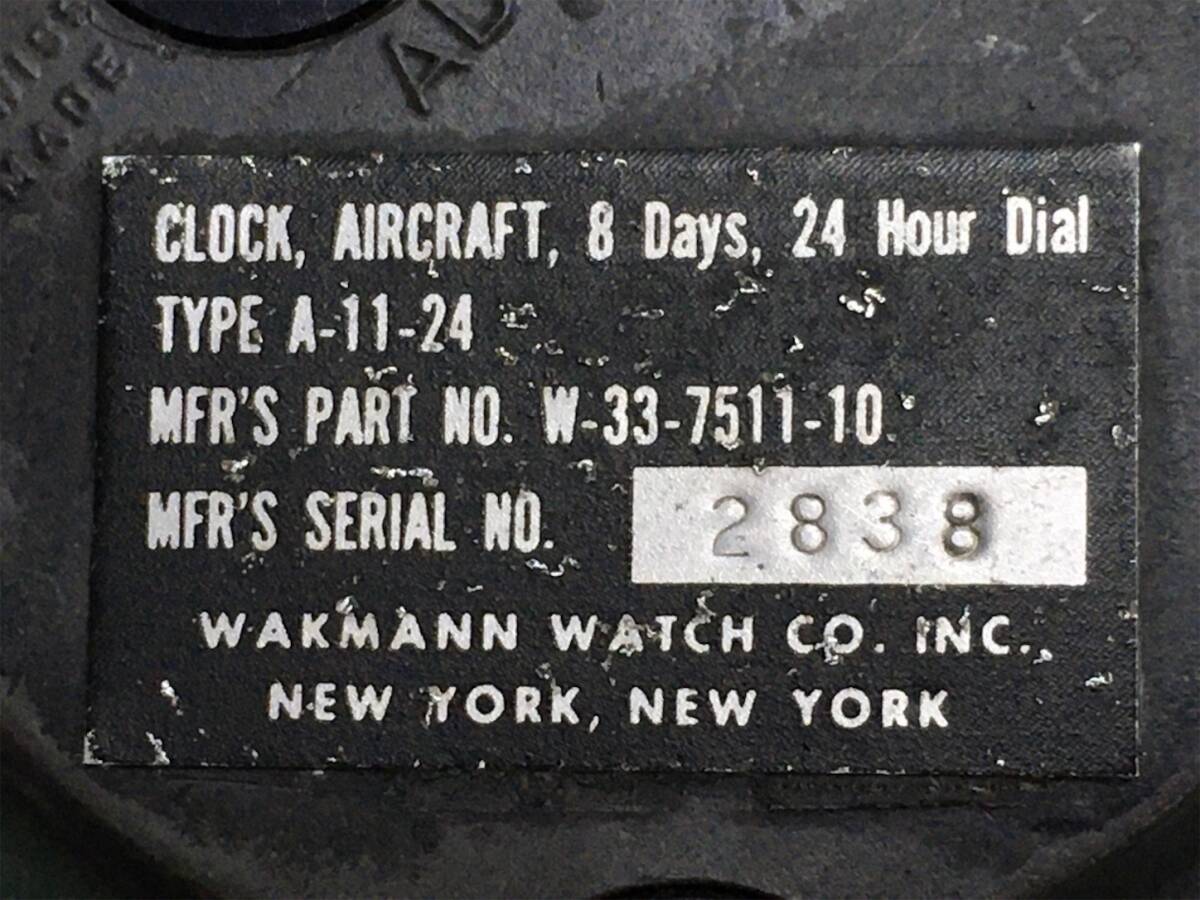 【送料無料】1950年代?アメリカ軍コックピットクロック(航空機用・A-11-24・24時間計・手巻・8日間持続・ワックマン社製・中古並品)