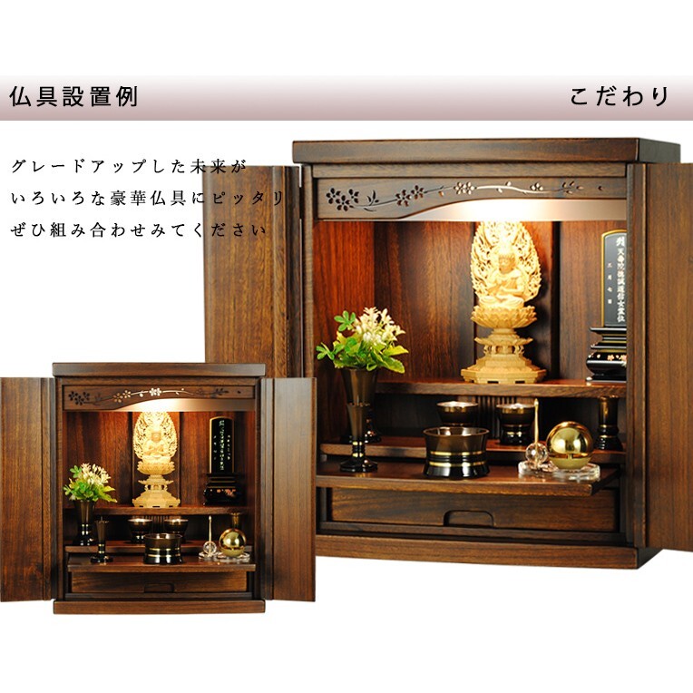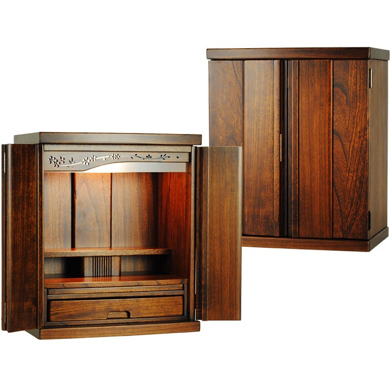 Product name: ウォールナット色(胡桃色)LED照明付き・桜欄間・曇りガラス・天然桐材・ミニ仏壇【新未来18号】送料無料nmirai18