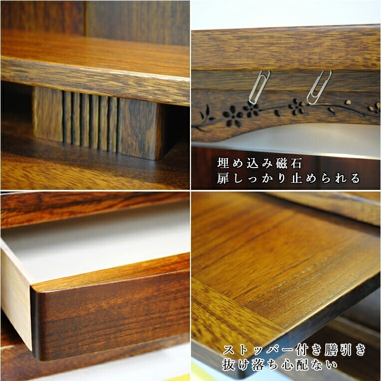※仏壇内部でローソクや線香の使用は禁止(火事の原因になります)、備え付けの膳引きをご利用ください