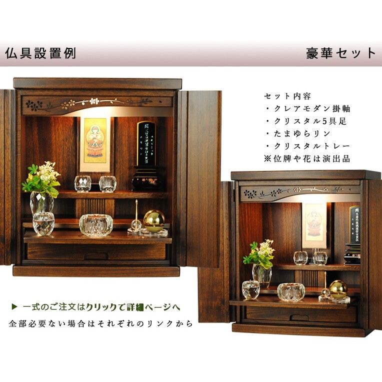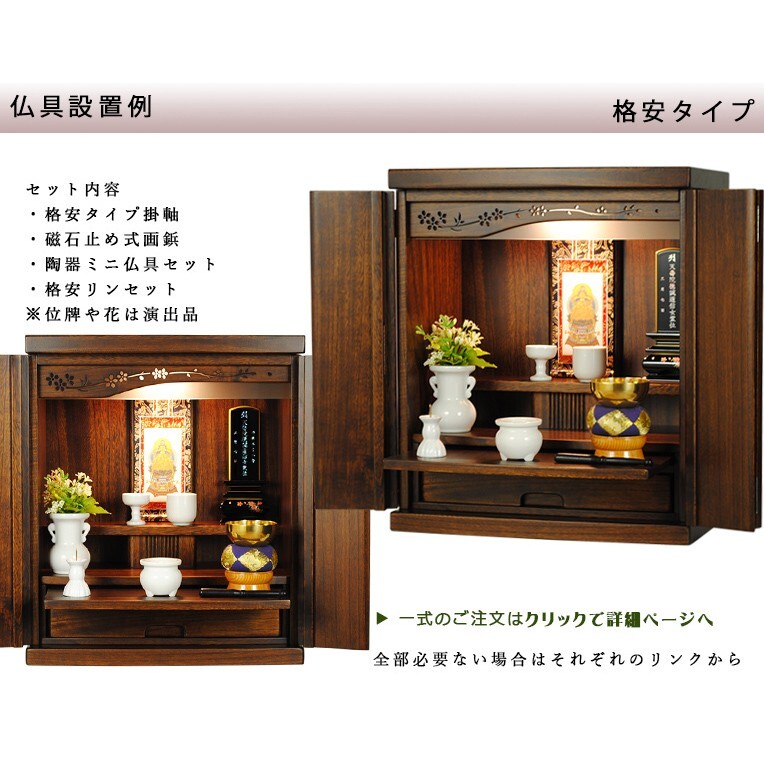 ※仏具付き上下セットのご注文は、仏具付き+仏壇台単品でご購入ください