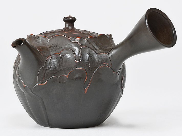 【 山田 宝生 作 黒泥 横手 茶注 共箱 y102707 】常滑焼 煎茶道具 茶器 茶具 急須 茶銚