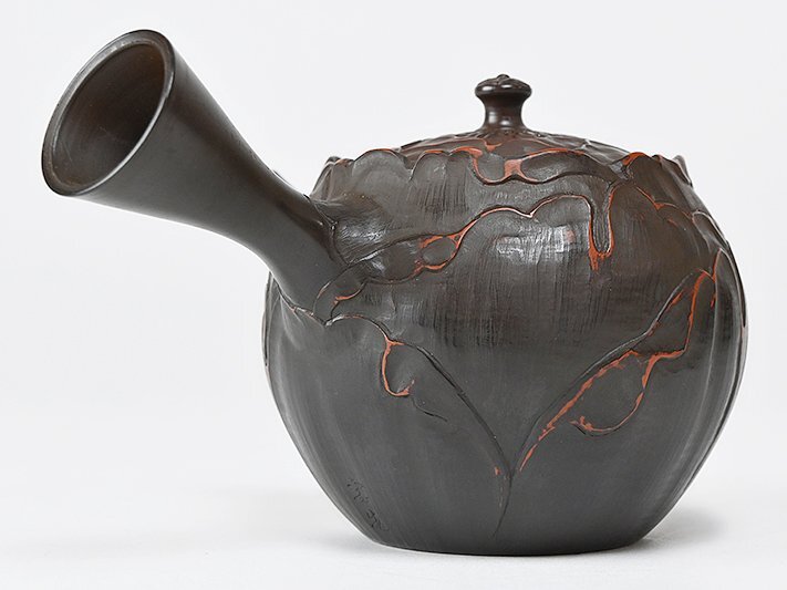 山田宝生作の黒泥横手茶注です。共箱付です。