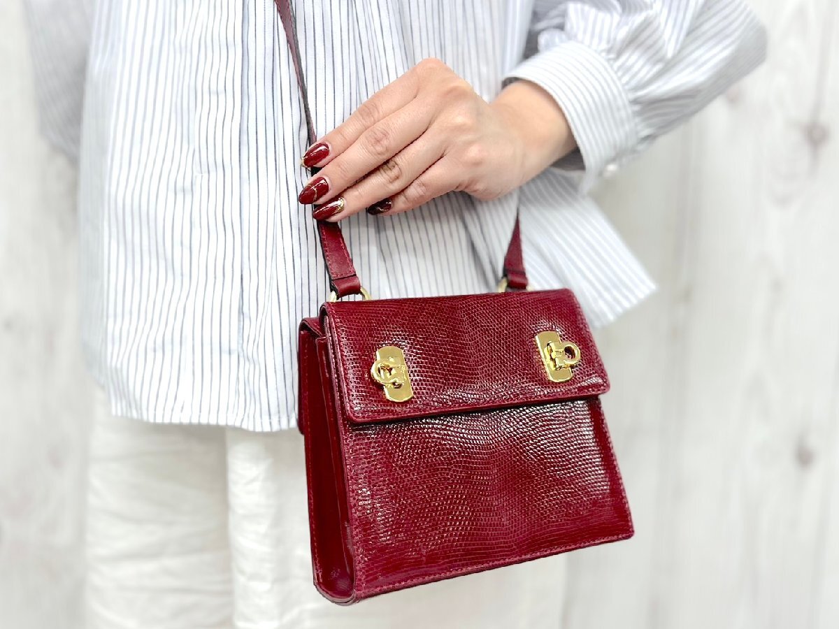 Product name: 極美品 Ferragamo フェラガモ リザード ガンチーニ ショルダーバッグ バッグ レザー 赤 90877