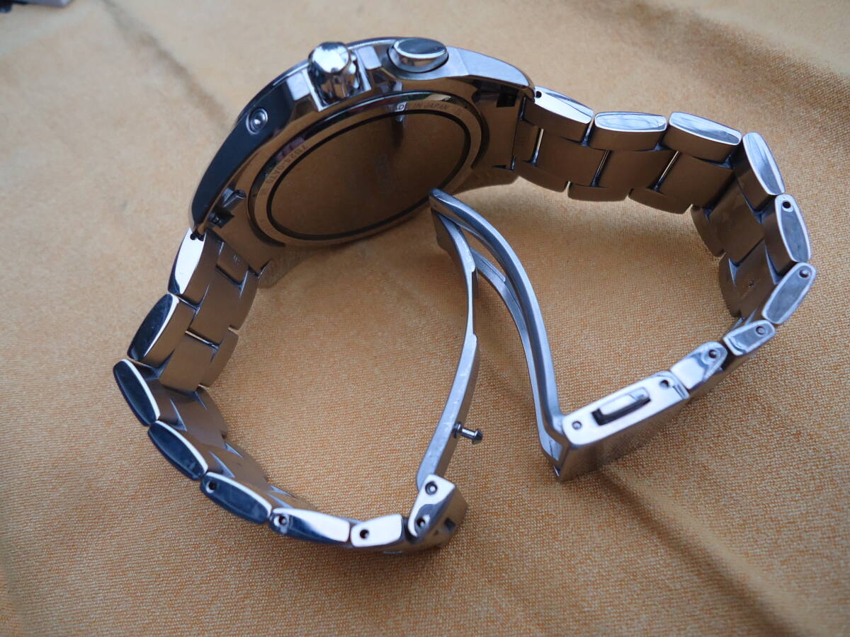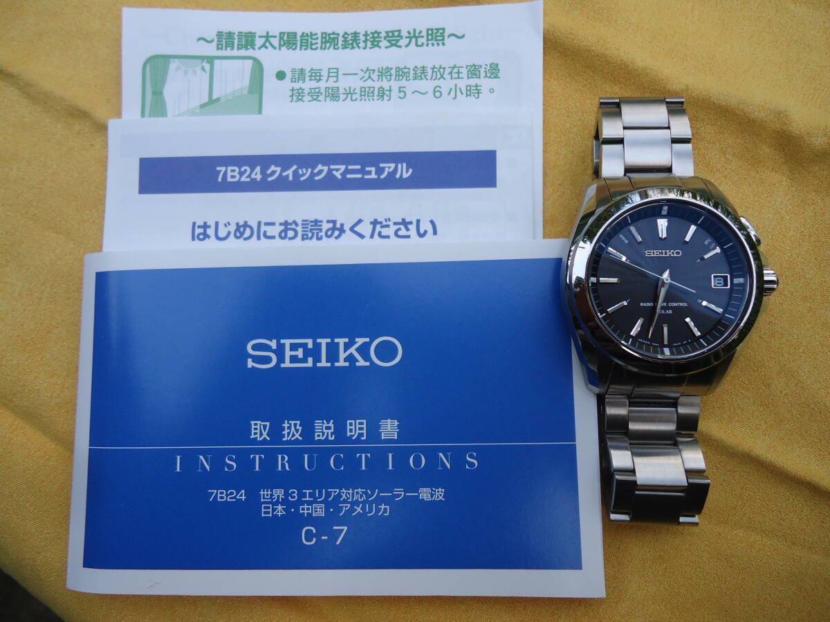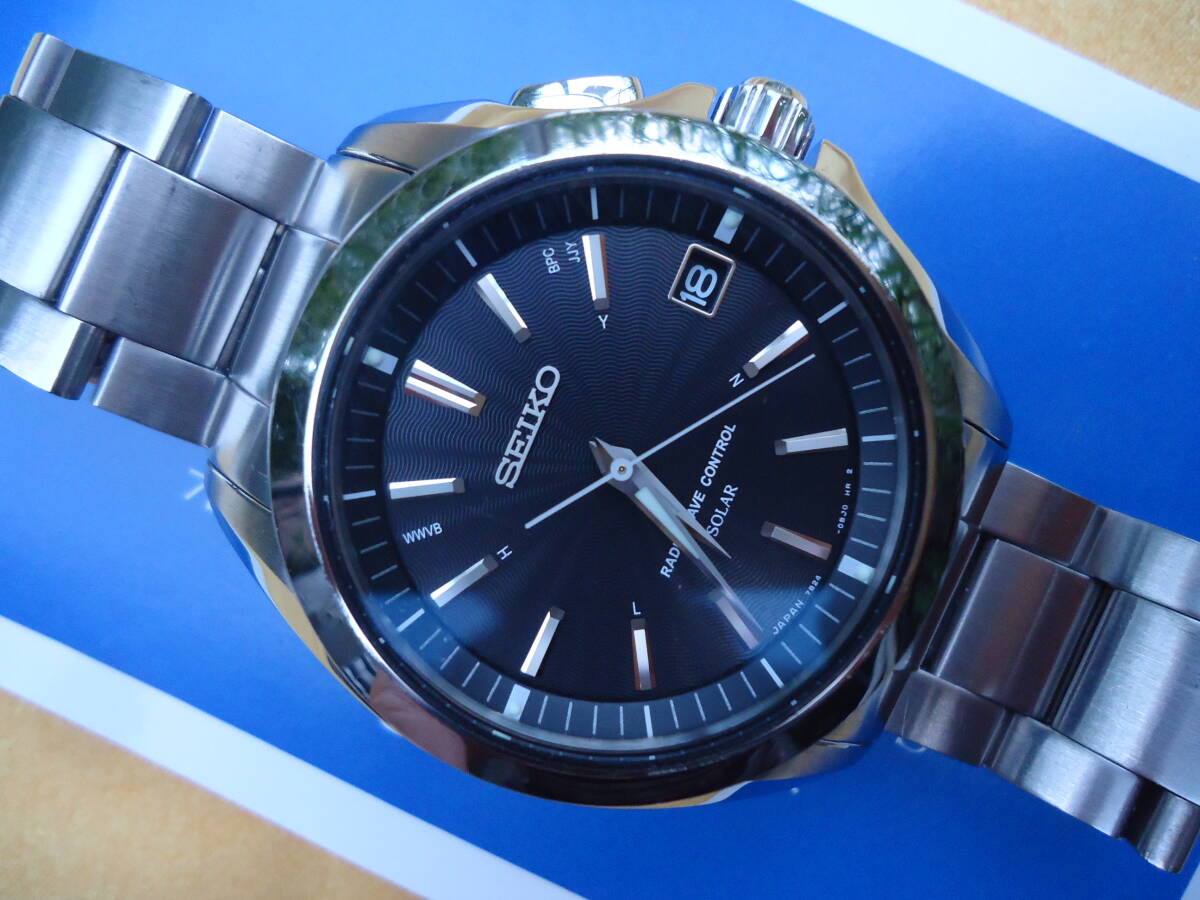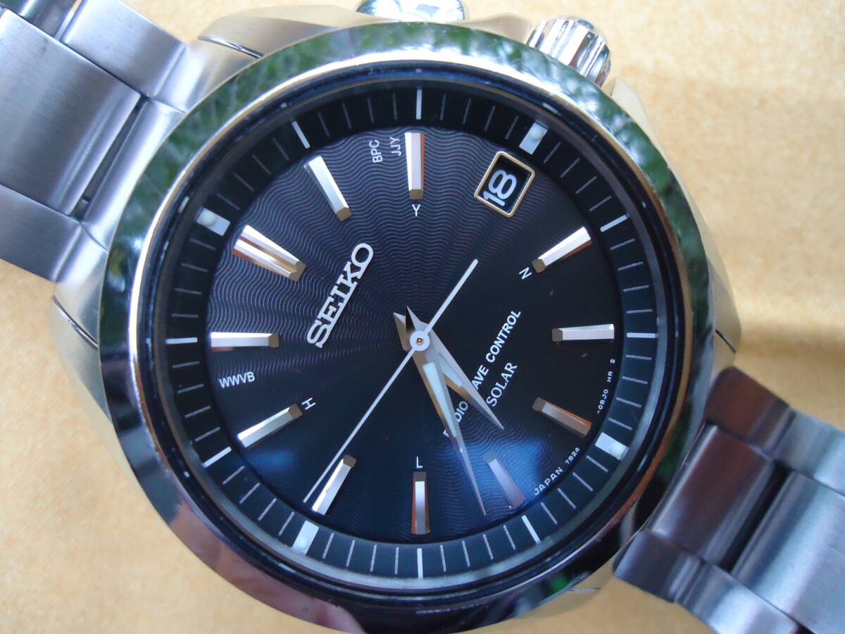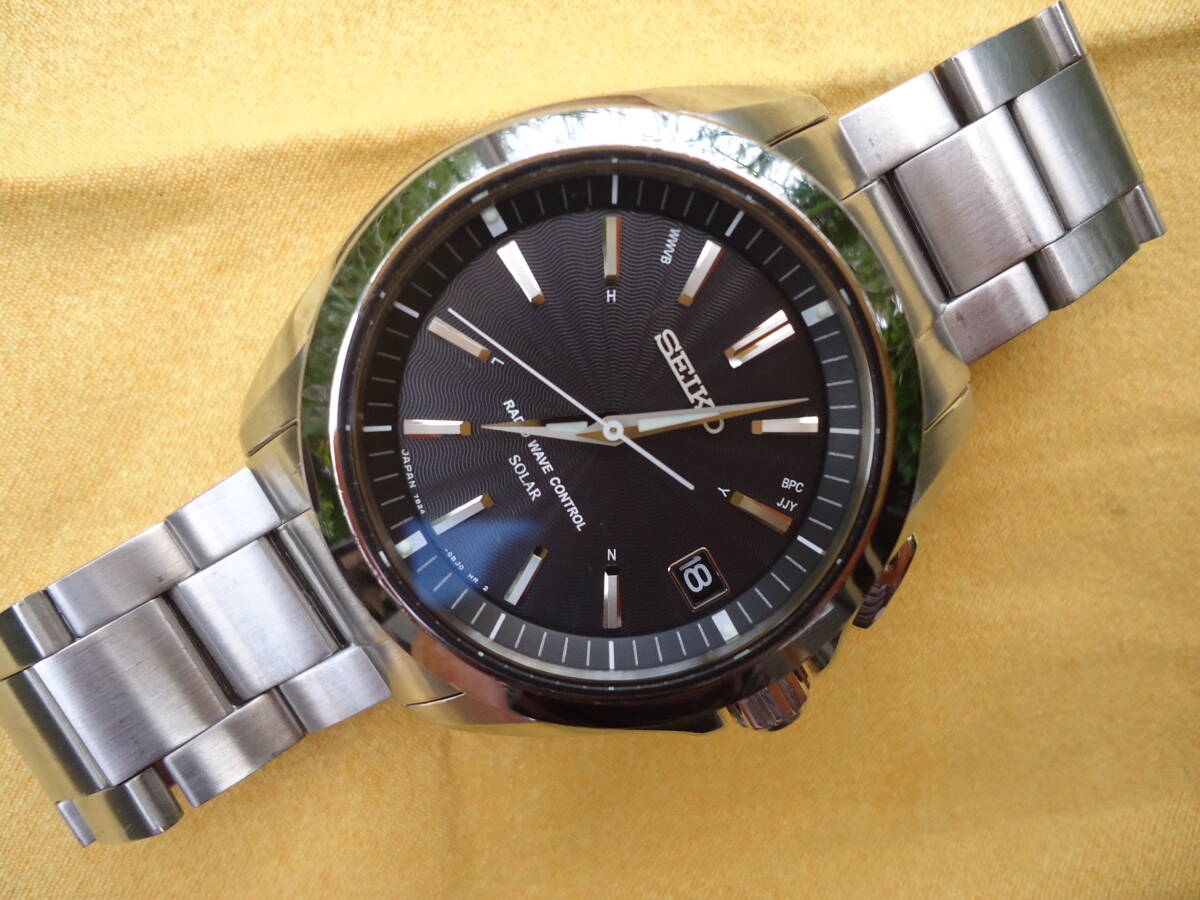 セイコーの電波ソーラー時計です。電波受信など動作確認済みです。腕周りのサイズは18.5センチ程度です。