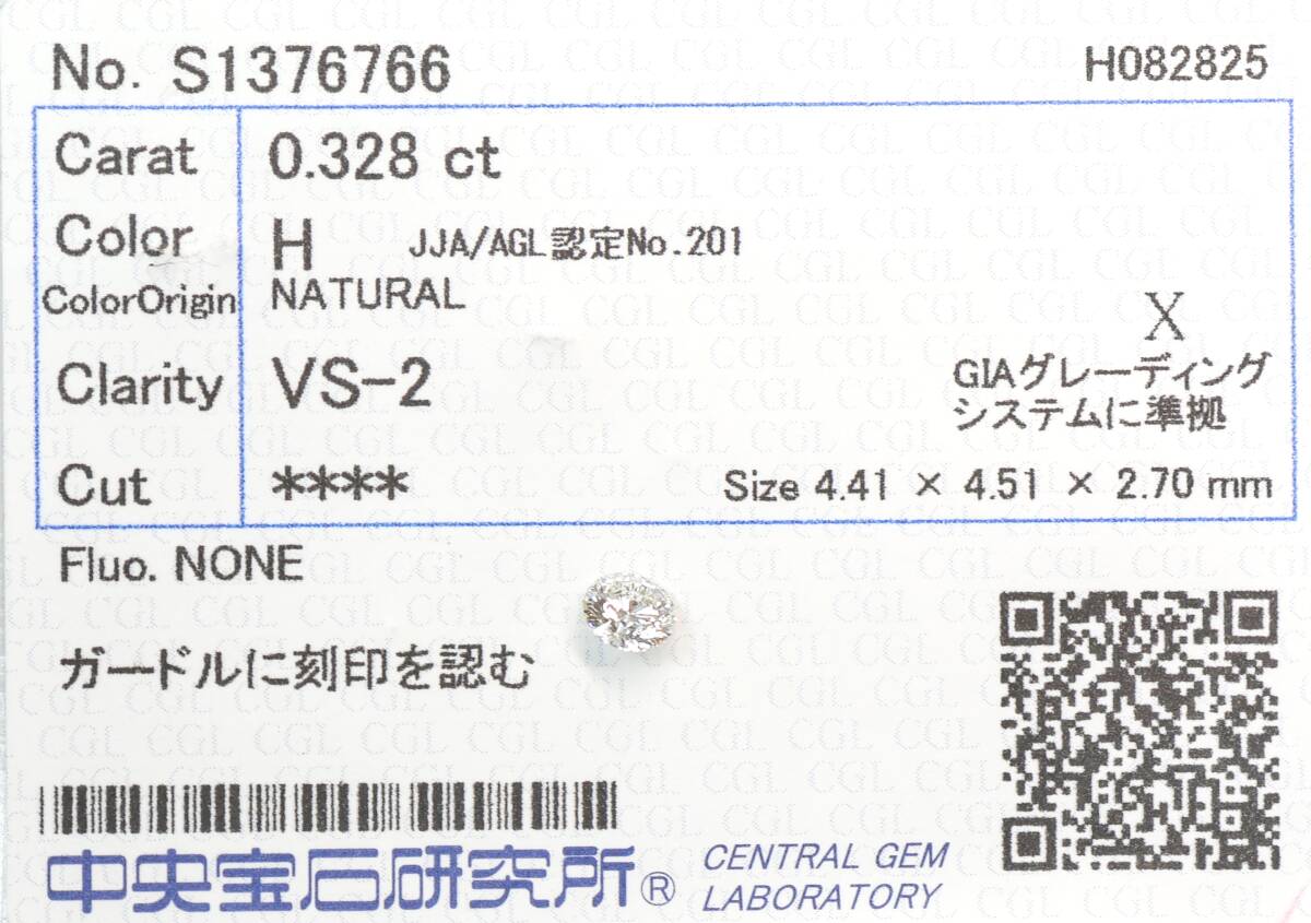 Product name: 【100円~】VS2!0.328ct 天然ダイヤ H(ナチュラルカラー)X
