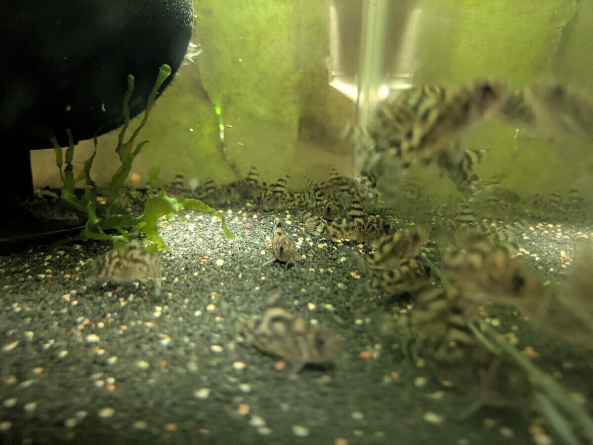 導入時は数日暗くして隠れ家など落ち着ける環境にしてあげると餌もよく食べ綺麗な体色に戻ります。