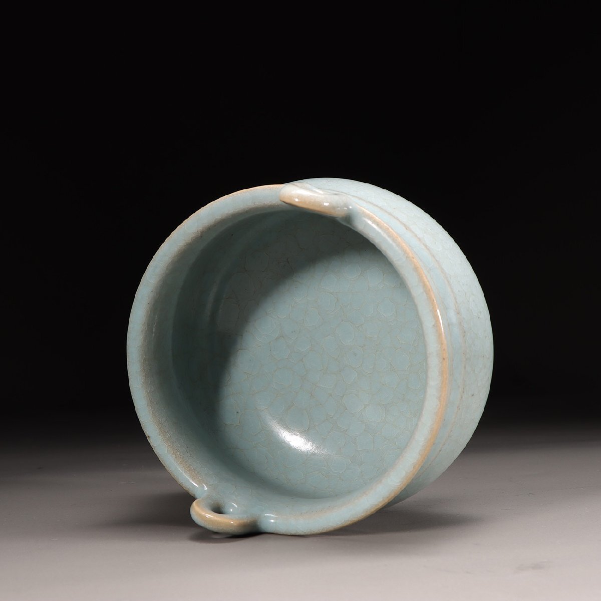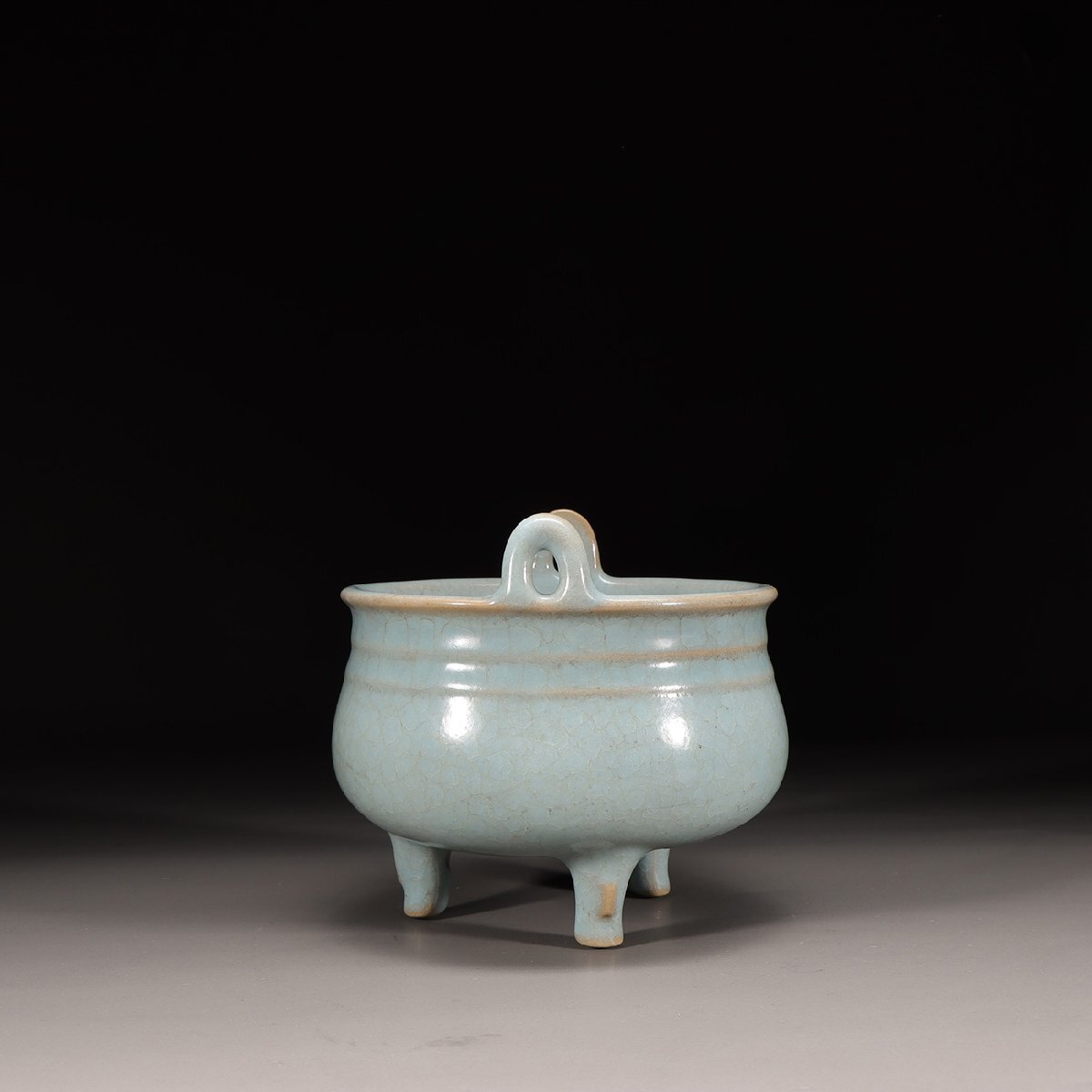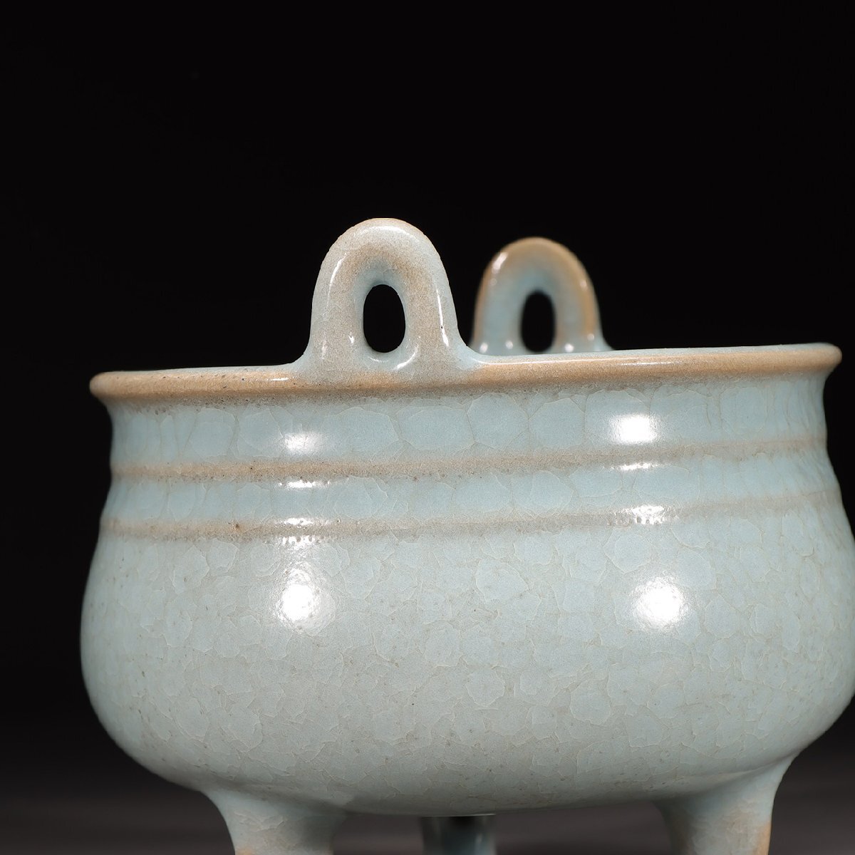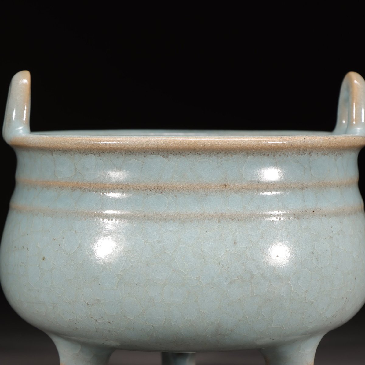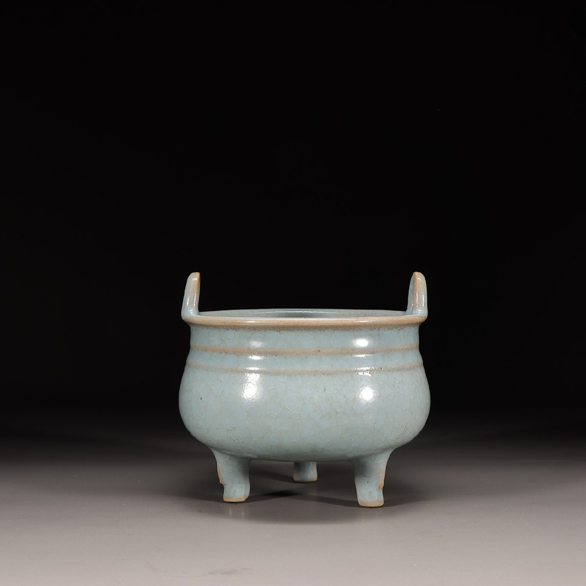 Product name: 【安】宋時代 官窯青釉弦紋三足鼎式炉 共箱 唐瓷 染付 古陶瓷 中国古美術 古董品 322