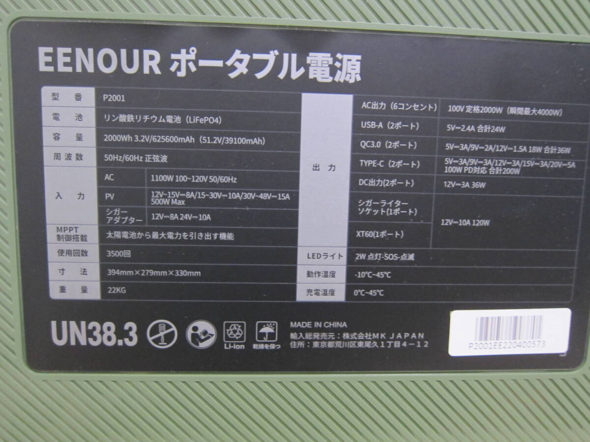 Product name: EENOUR ポータブル電源 P2001 大容量 2000Wh/625600mAh リン酸鉄リチウム電池
