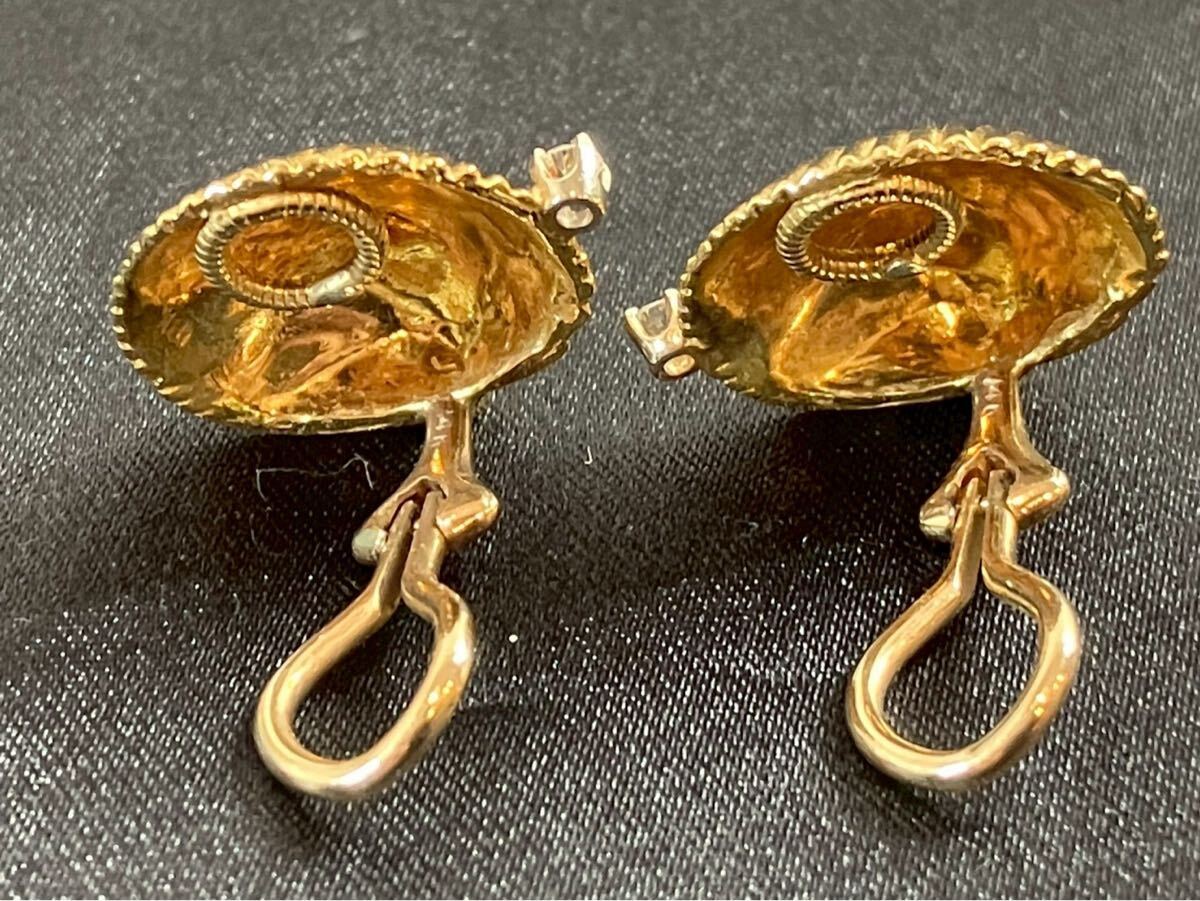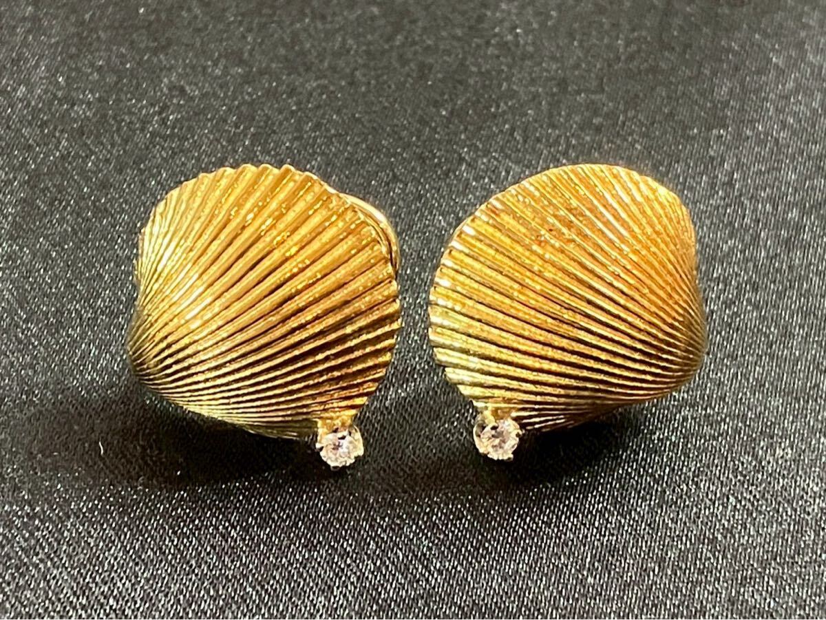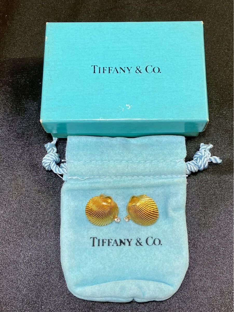 E601 TIFFANY&Co. ティファニー シェル イヤリング 18K ダイヤ付き アクセサリー アンティーク 貝殻 約8g