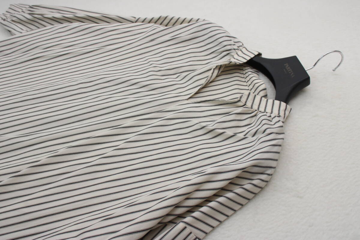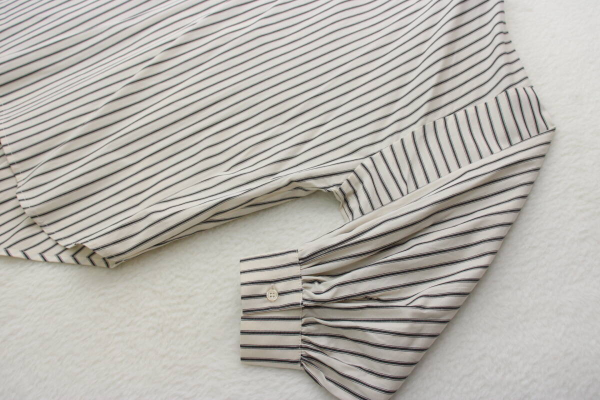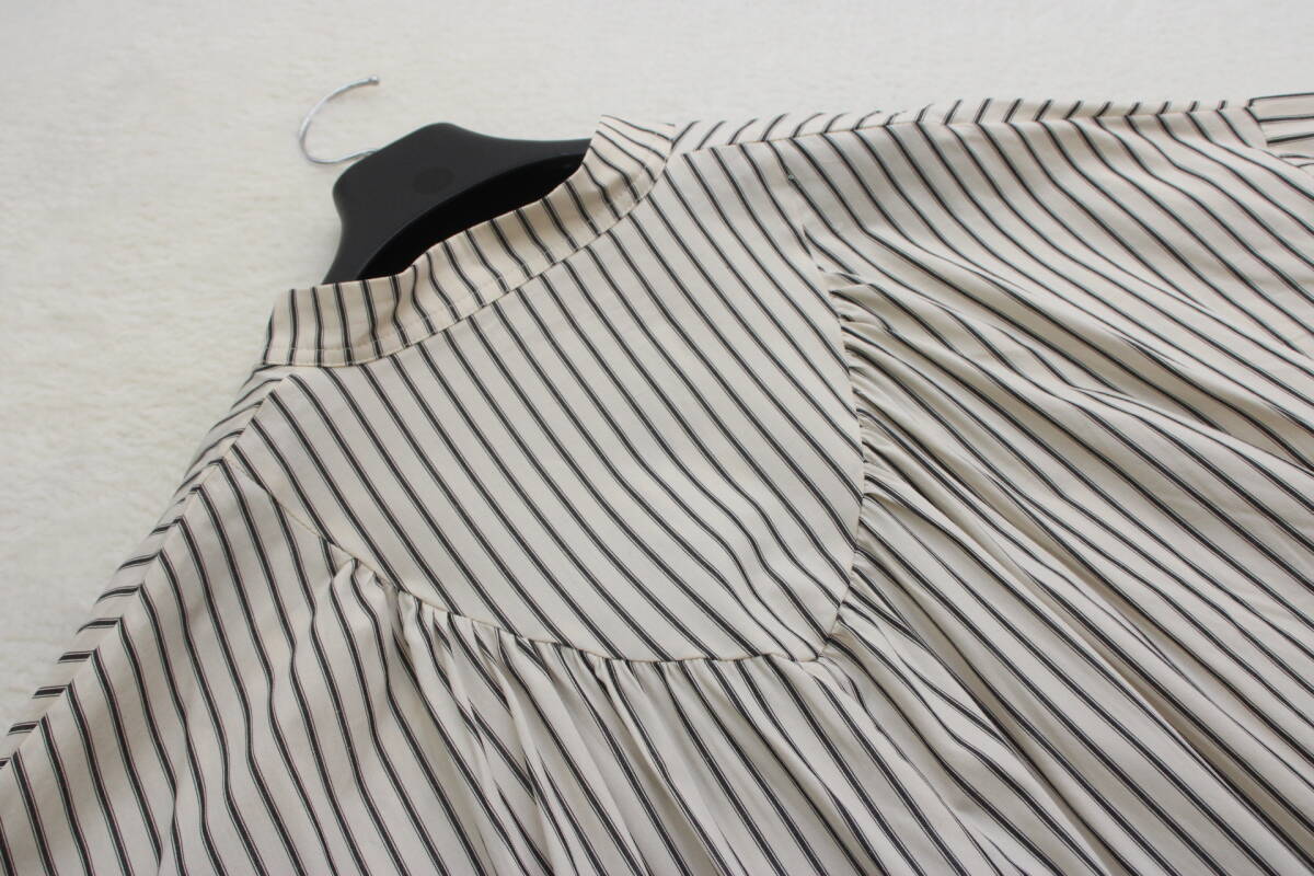 Product name: 2987 新品 バックVギャザーキーネックブラウス ストライプ柄ベージュFサイズ