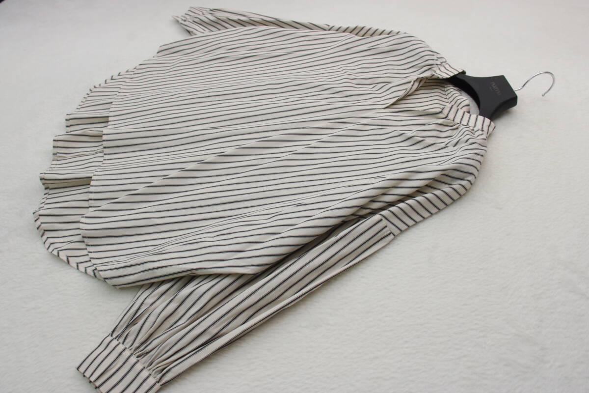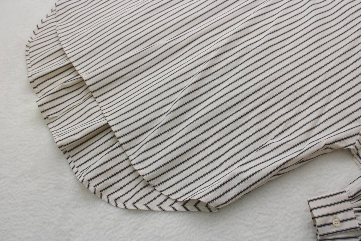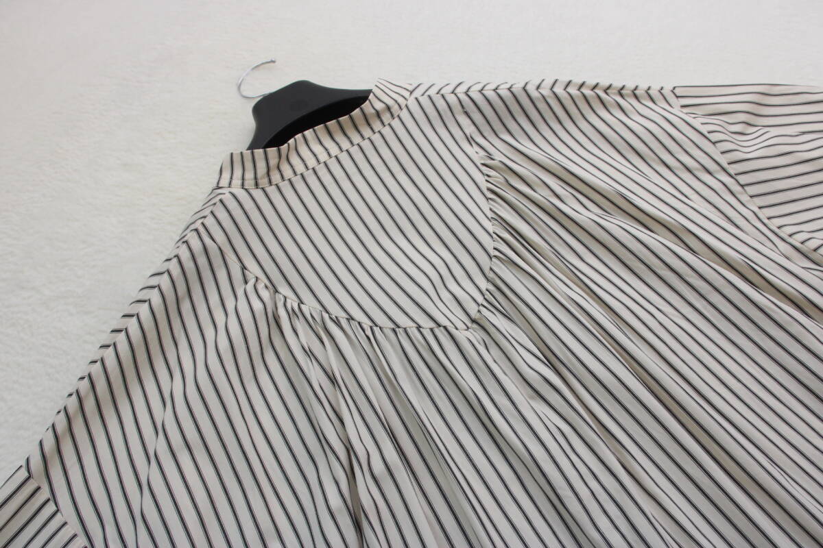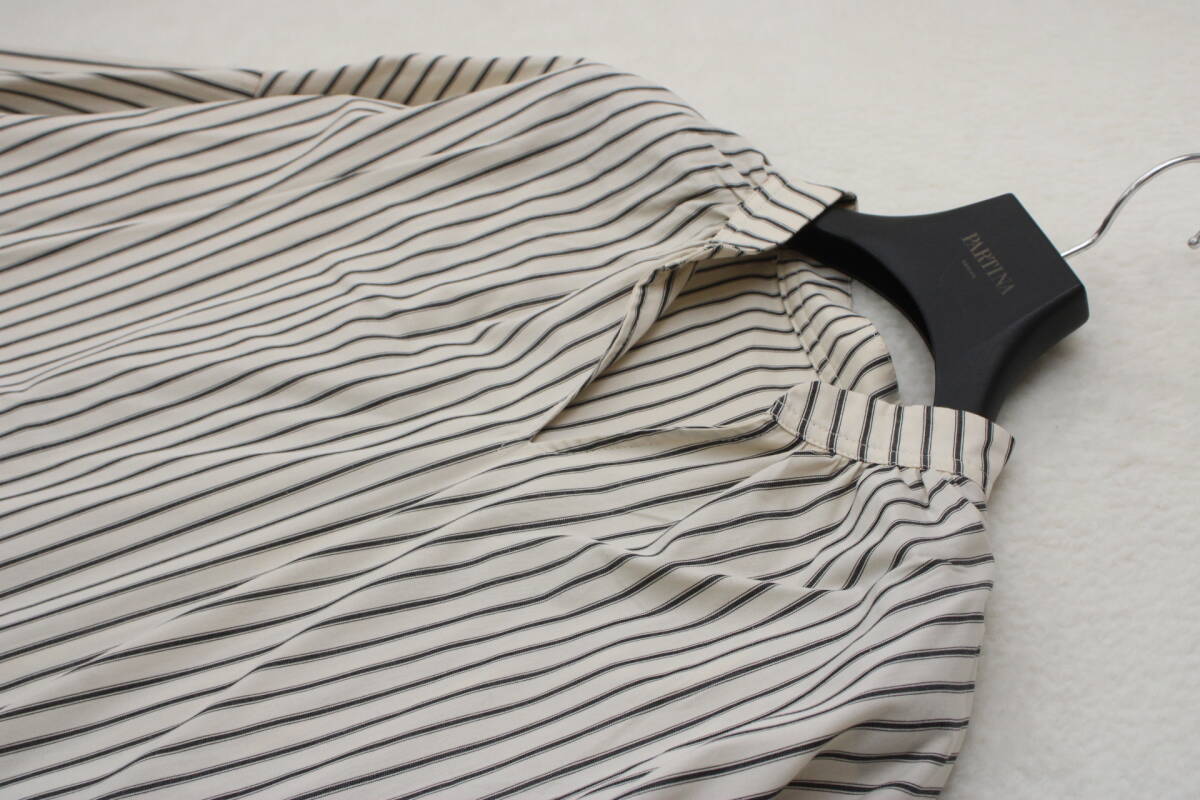 Product name: 2987 新品 バックVギャザーキーネックブラウス ストライプ柄ベージュFサイズ