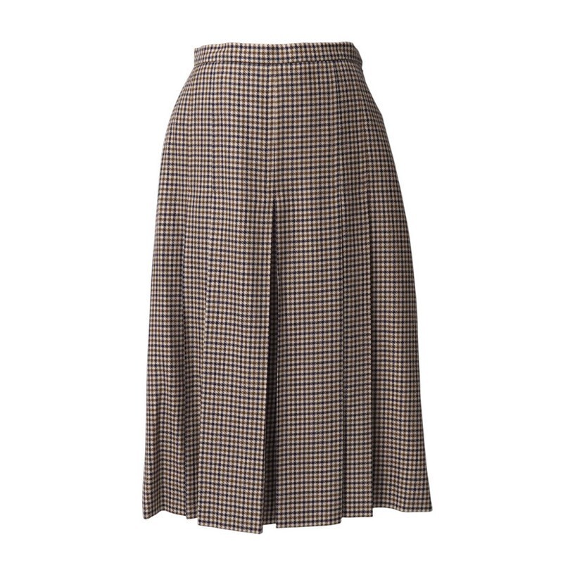 Product name: GS3662★イギリス製 Aquascutum アクアスキュータム ヴィンテージ ウール100% チェック柄 膝丈 プリーツスカート ブラウン サイズ/UK10