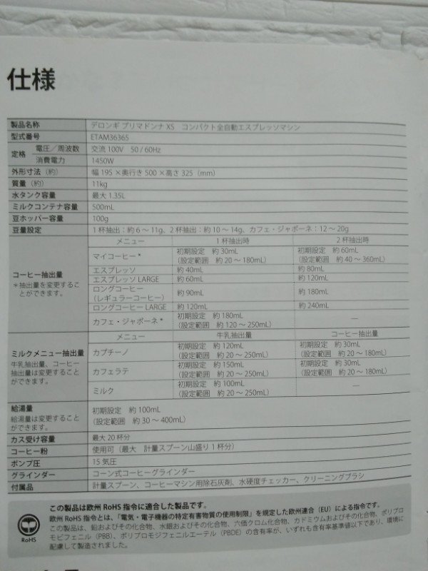 Product name: DeLonghi デロンギ プリマドンナXS ETAM36365MB コンパクト全自動 エスプレッソマシン コーヒーメーカー ETAM36365