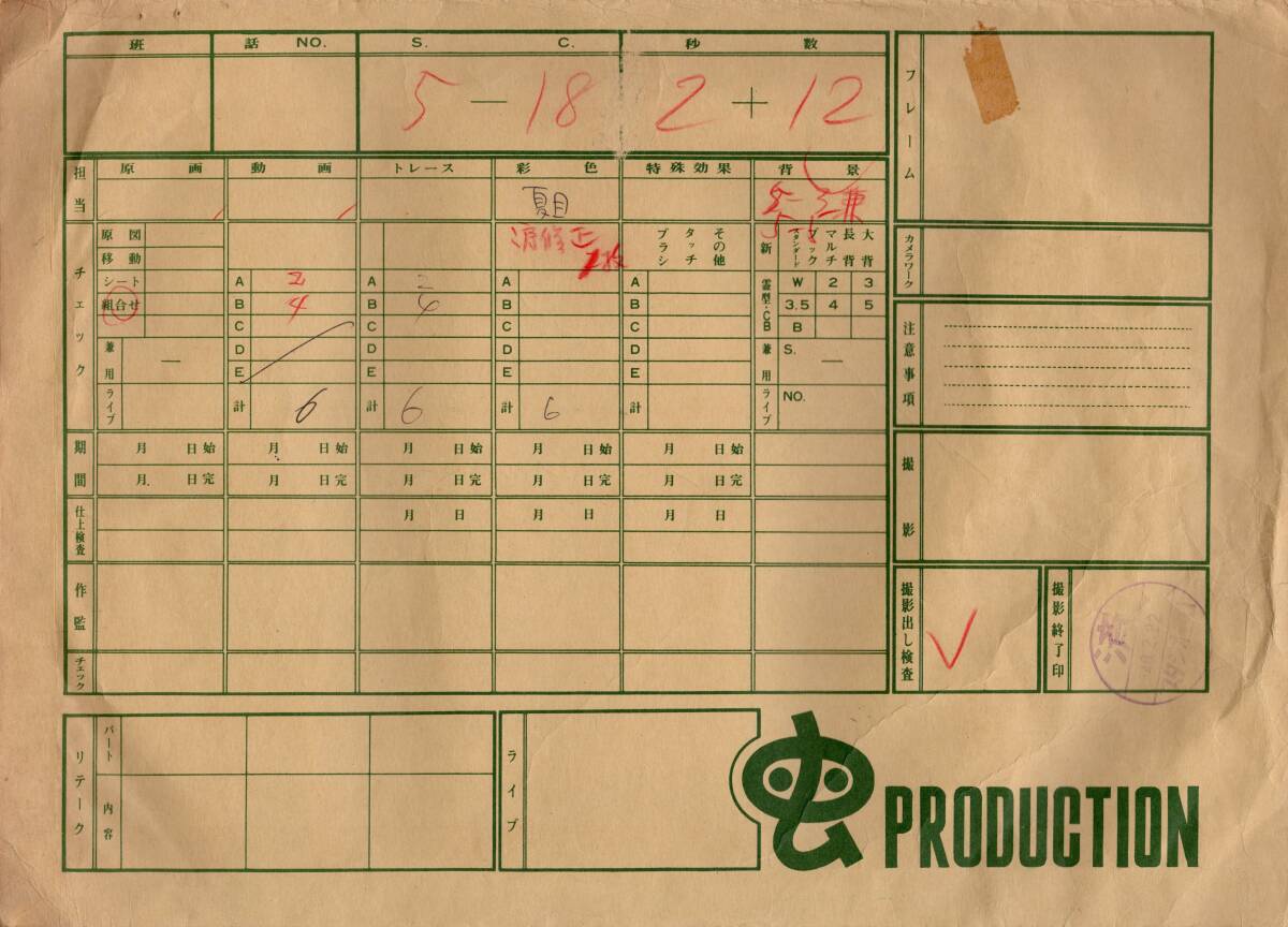 実際の制作で使用された物です、動画付きですが全てセル画と張り付いています、タイムシート、カット袋付き、タイムシートは破れています。。