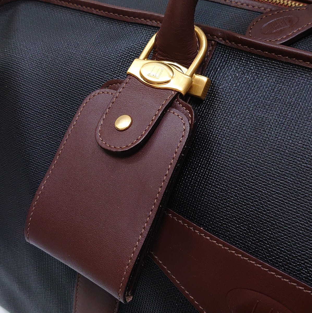 超美品 dunhill ダンヒル 本革レザー ボストン バッグ 黒×ブラウン ゴールド金具 ネームタグ付 大容量 旅行 トラベル メンズ バッグ