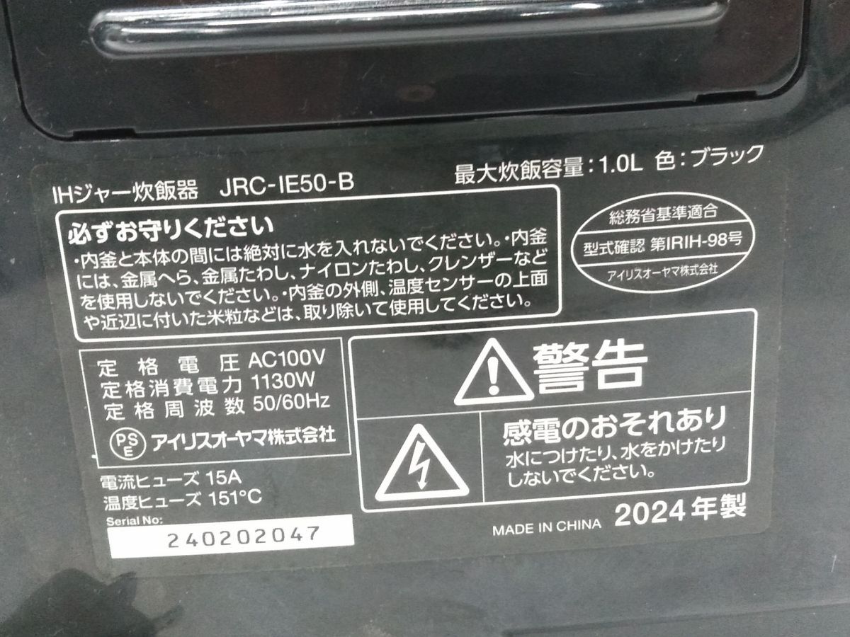 Product name: ●動作品 2024年製 IRIS OHYAMA アイリスオーヤマ IHジャー炊飯器 5.5合炊き ブラック JRC-IE50-B 最大炊飯容量 :1.0L 1020-319B @100●