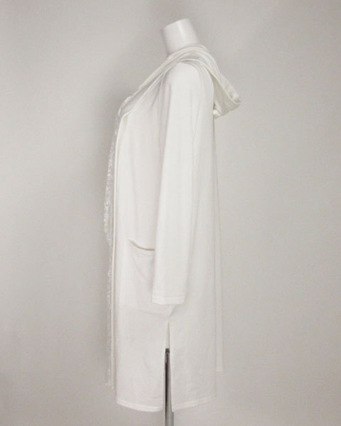 前立てにレースが施されたロングカーディガンで