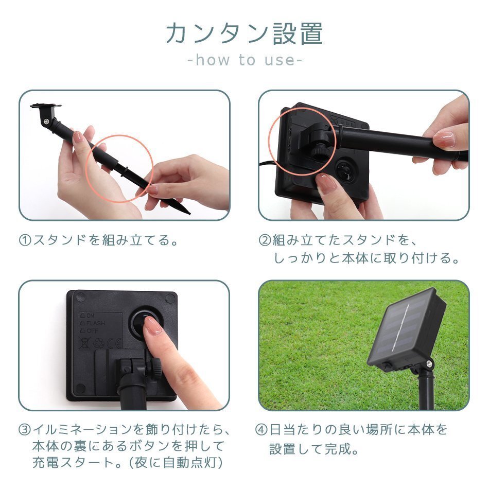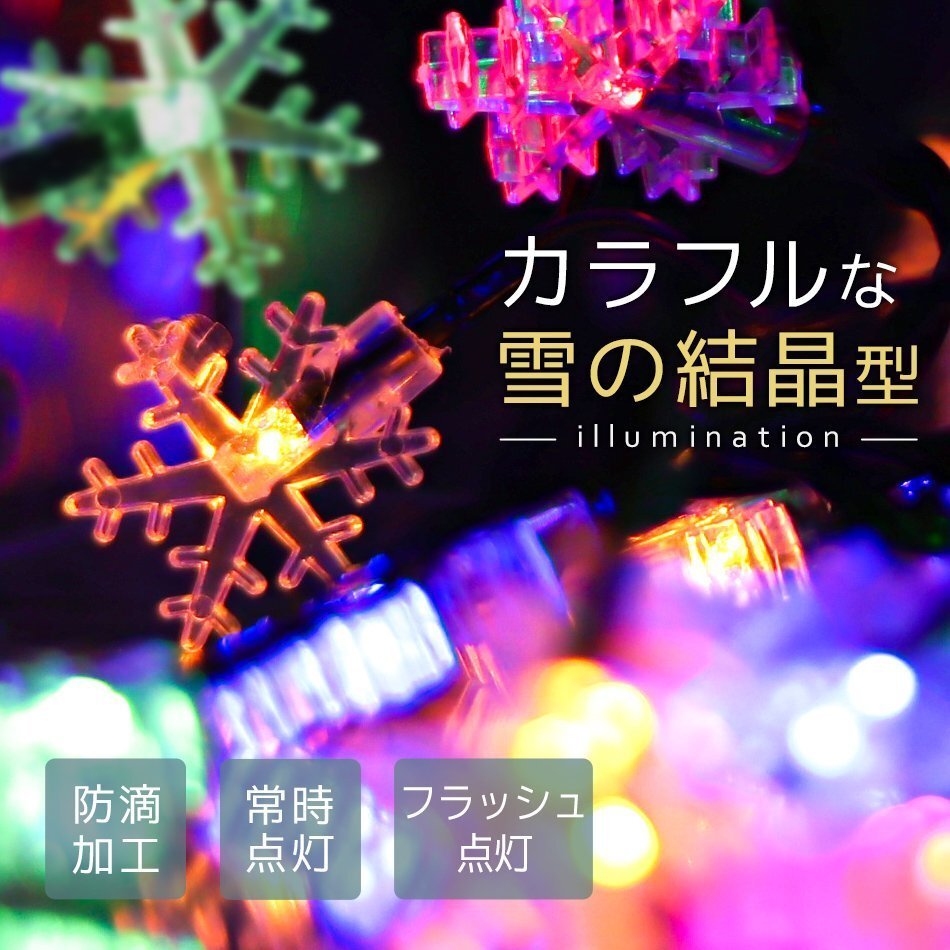 1円~ ソーラー充電 LED イルミネーション 雪の結晶タイプ ライト 7m 防滴 電気代0円 イルミ クリスマス 飾り 屋外電飾 ハロウィン