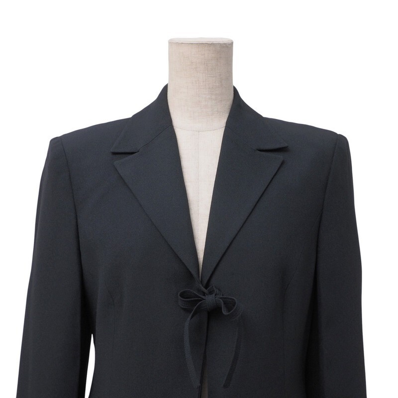さらりとした柔らかな生地を使用し、ジャケットはフロントのリボンが女性らしいアクセントに◎