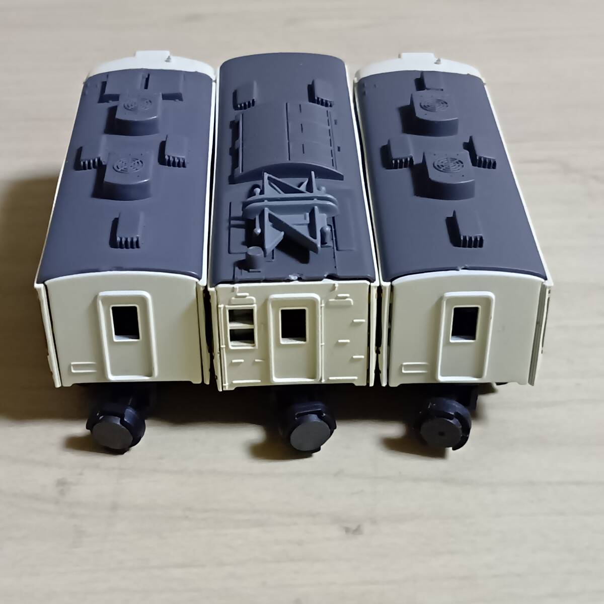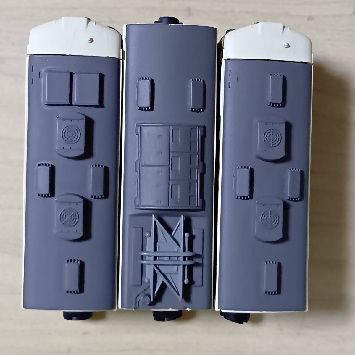 写真のもの送ります。きれいなものもあれば、塗装はげ、色付き、傷、欠品、壊れている(ボディー割れ、スカート割れ他)ものもあります。組間違いや他車部品(妻、レリーフ、パンタグラフ、スカート他)が使われている場合もあります。それらが、ついていない車両もあります。