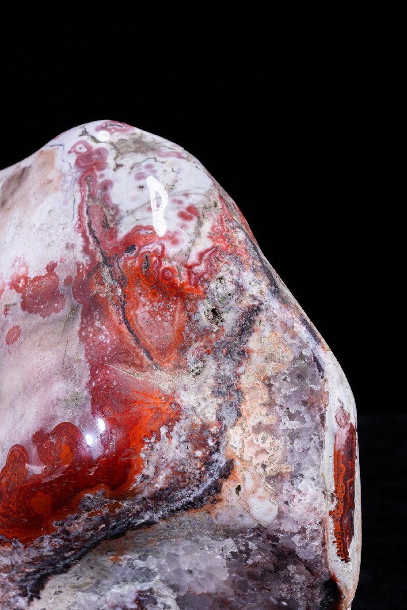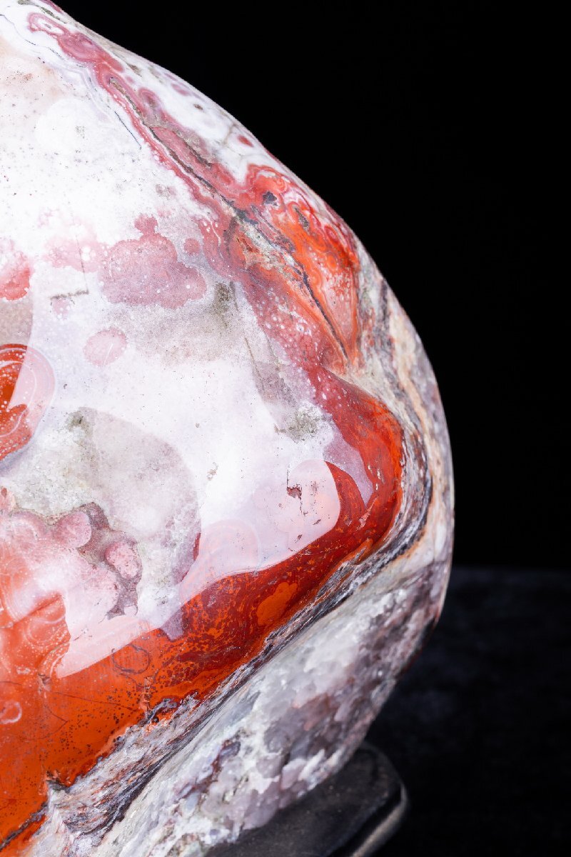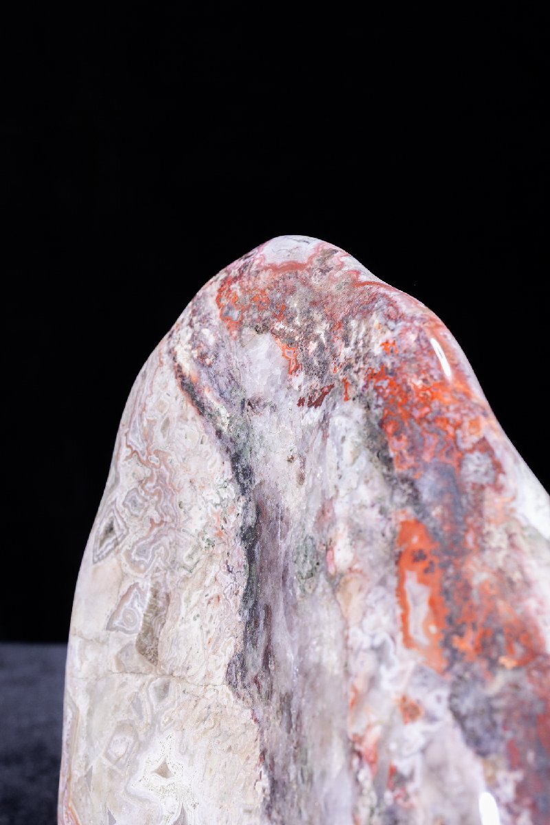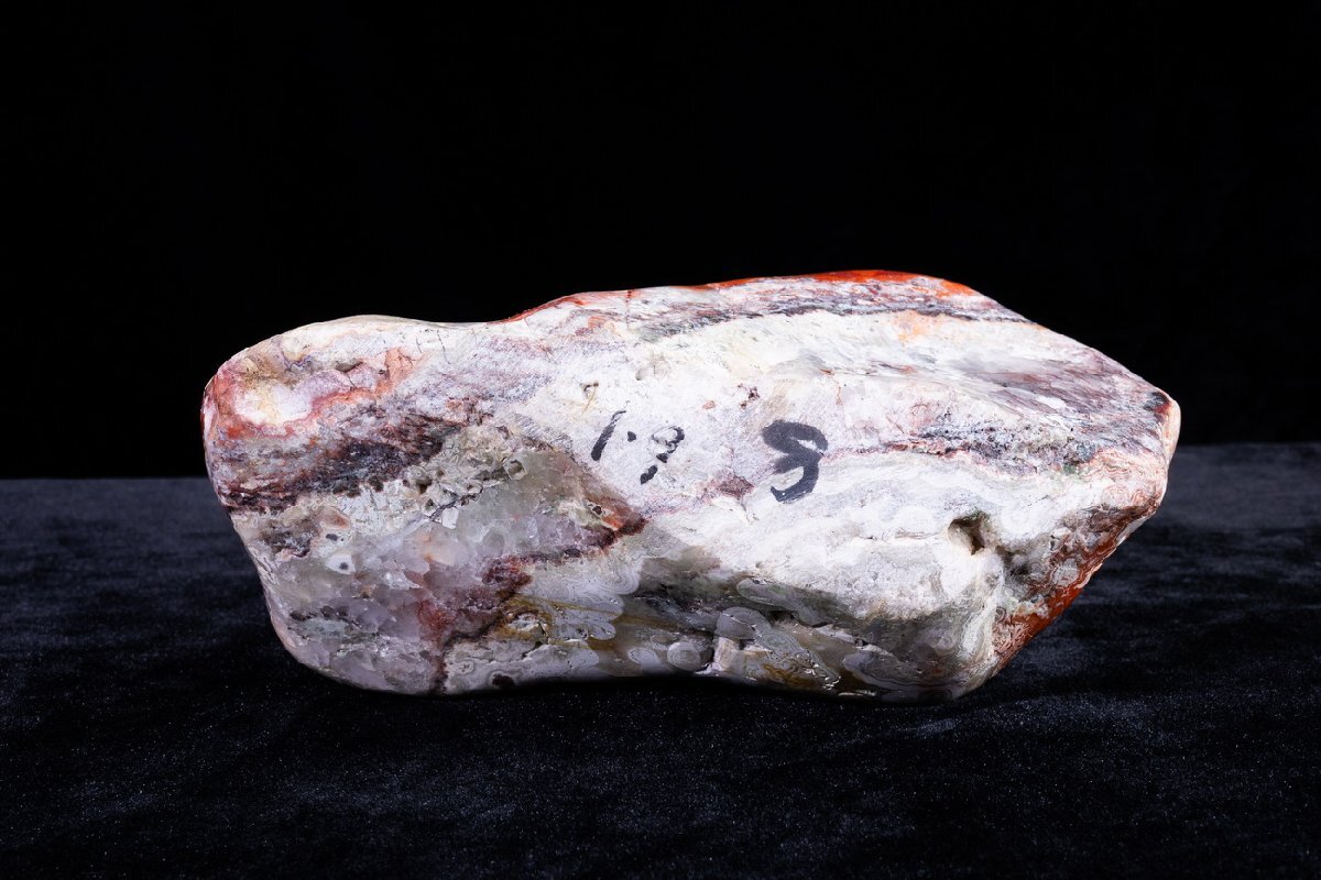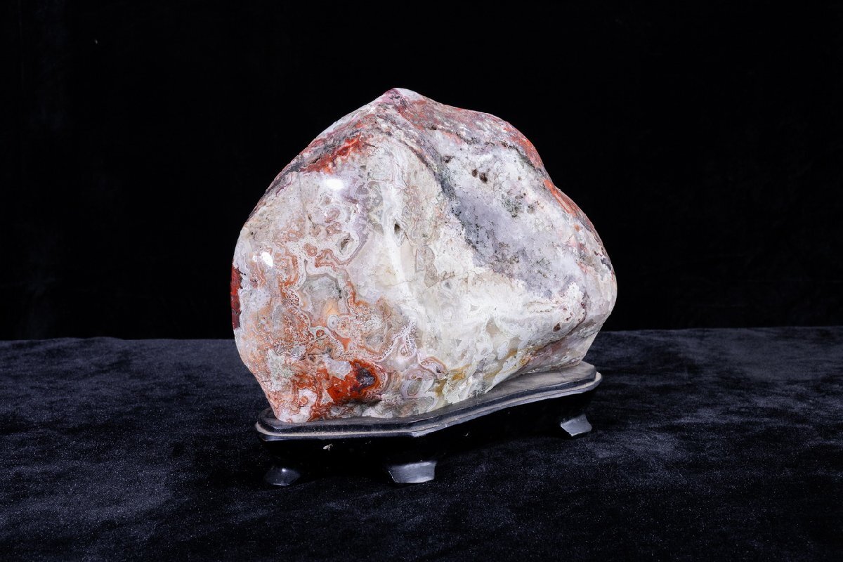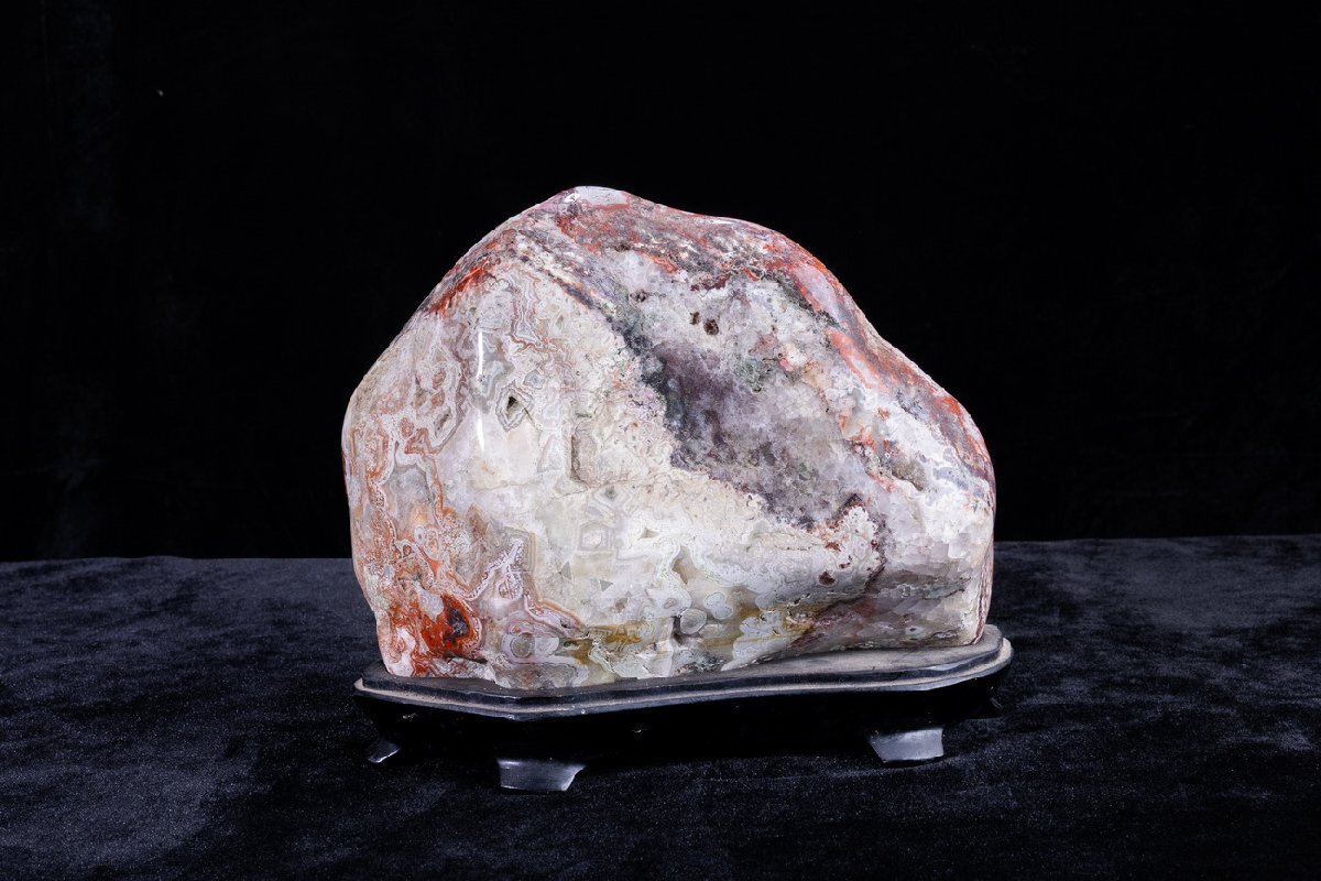 【珍品堂】1円から M98-V01 天然石 大垣赤坂金生山 紅更紗石 鑑賞石 水晶 五色石 原石 水石 奇石 自然石 盆栽 瑪瑙 台付 重6.13kg 骨董品