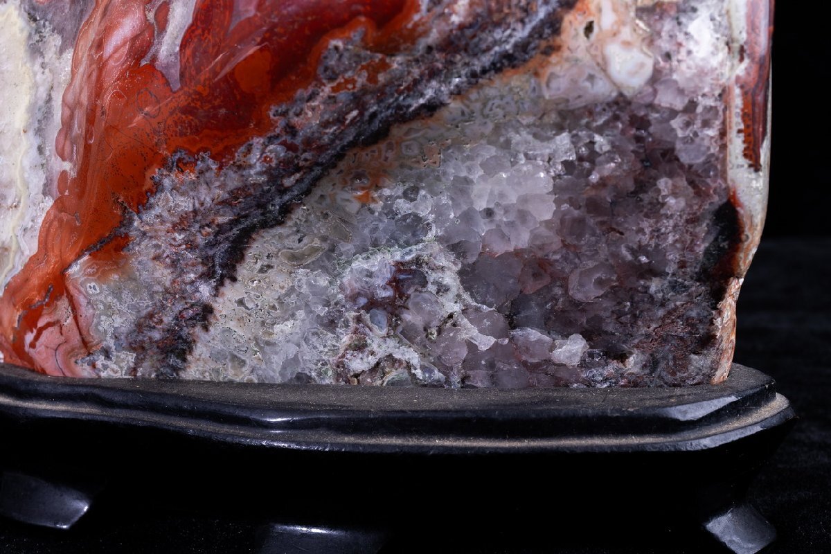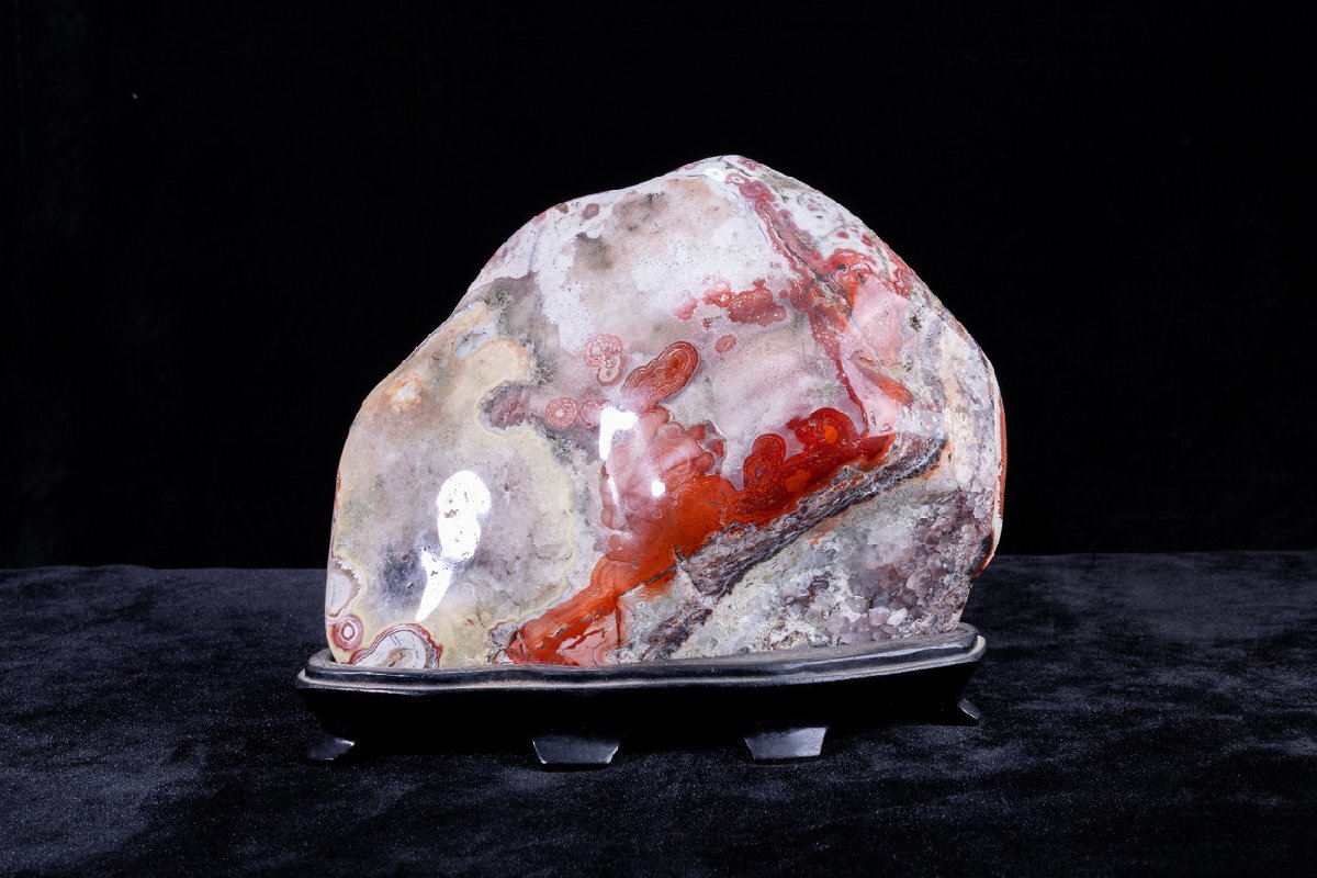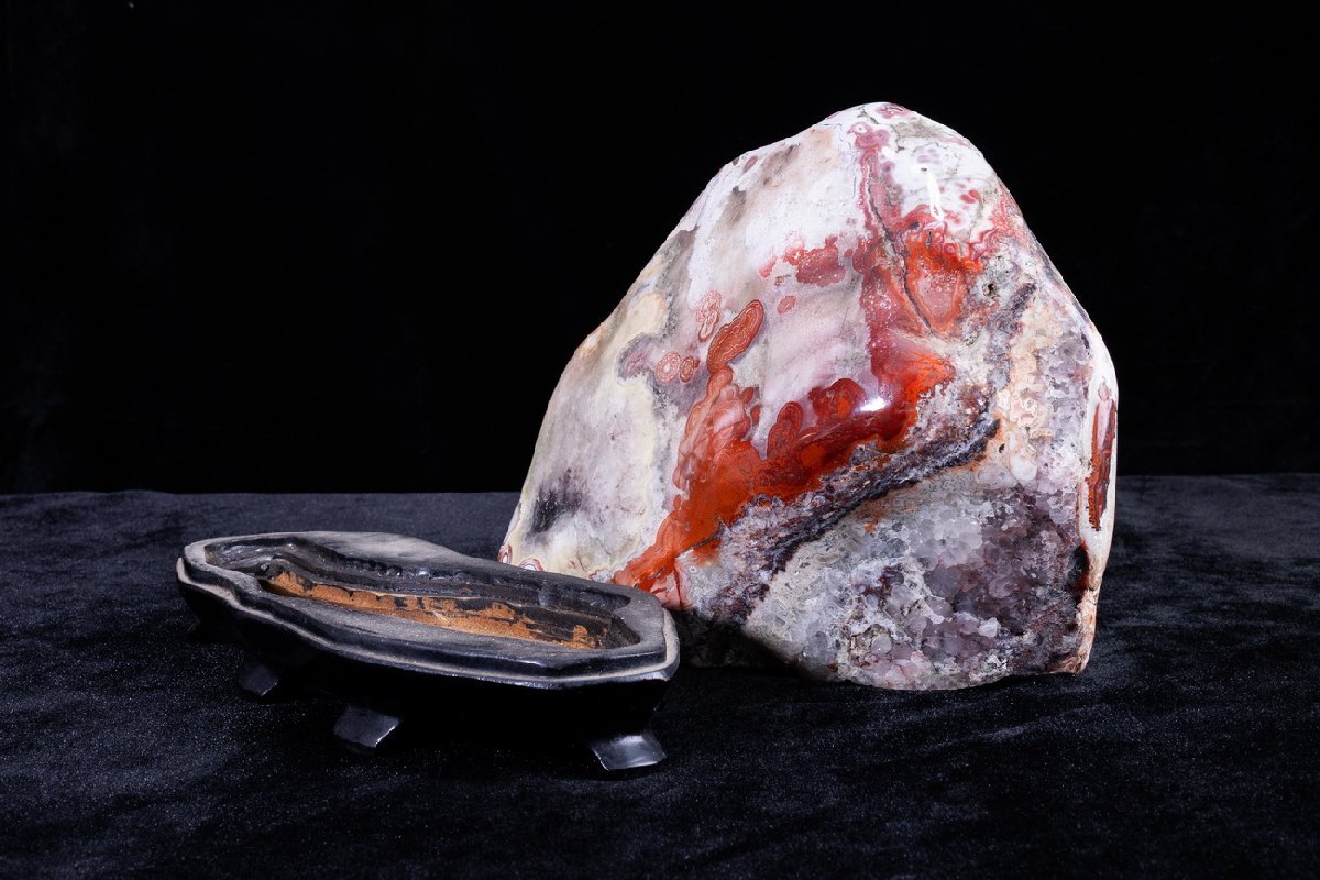 Product name: 【珍品堂】1円から M98-V01 天然石 大垣赤坂金生山 紅更紗石 鑑賞石 水晶 五色石 原石 水石 奇石 自然石 盆栽 瑪瑙 台付 重6.13kg 骨董品